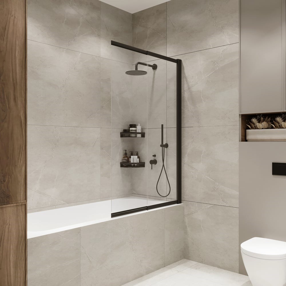 Шторка на ванну стеклянная 90x145 см раздвижная на монопетле, с профилем черного матового цвета и прозрачным стеклом. Подходит к классическим прямоугольным ваннам любого производителя и устанавливается на борт.Благодаря выдержанному дизайну, интерьер станет более строгим.В производстве данного изделия используются материалы только высокого качества. Витраж из безопасного, ударопрочного, закаленного стекла AGC Premium 5 мм, марки М-1, П-образный профиль из анодированного алюминия.Шторка универсальной ориентации, перевернув на 180°, вы получите левый либо правый вариант установки. Крепится упором в стену и на борт ванны.Изделие идет в жесткой упаковке, что позволяет максимально защитить груз во время перевозки. Обрешетка представляет собой деревянный каркас, сделанный по габаритам груза.