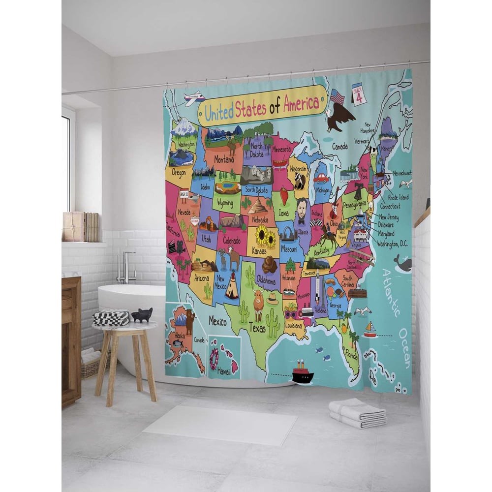 Шторка-занавеска для ванной JoyArty Анималистическая карта США