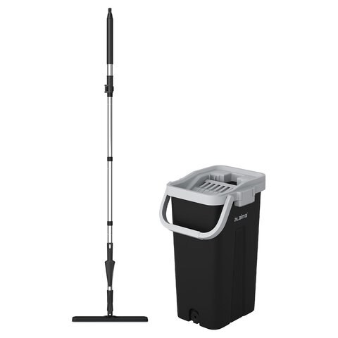 Швабра с отжимом и ведром 10л/7л двухкамерное, 2 насадки микрофибра, карманы с 2-х сторон, рукоятка 134-154см черный AltaMop L, LAIMA,609151