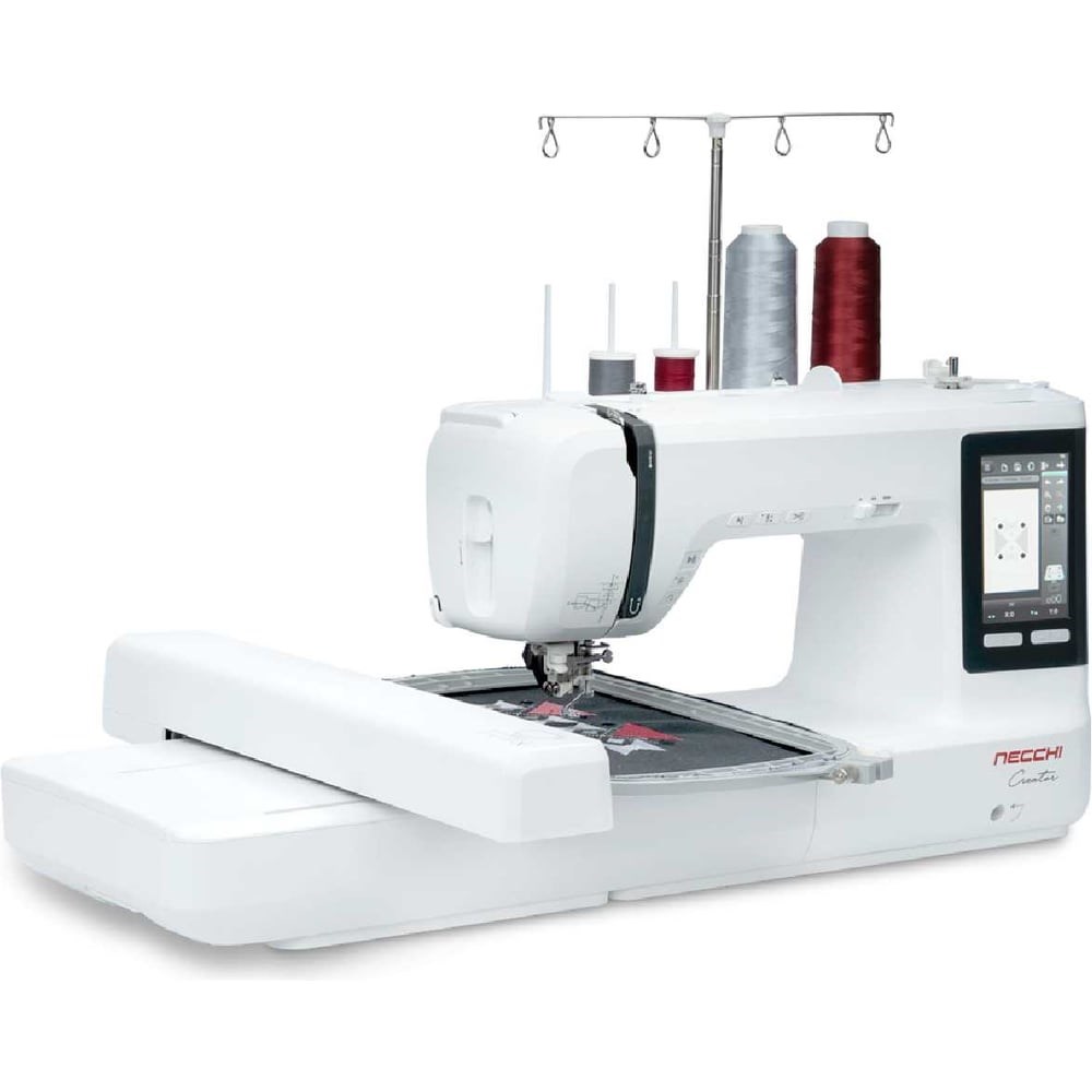 Швейно-вышивальная машина Necchi Creator 9999 (Necchi Creator C2000). Эксперты подчеркивают главную особенность именно этой модели швейно-вышивальной машины. Обычно все устройства, объединяющие несколько функций априори проигрывают монофункциональной конструкции. Но модель Necchi Creator 9999 выделяется своими качествами как компьютерная швейная машина. Огромное поле шитья, коленный рычаг, удобный дисплей и понятная логика управления позволяют приоритетно рекомендовать ее для профессионального шитья. А современные вышивальные функции весомо дополняют швейные возможности экспертного класса и расширяют творческий потенциал до максимальных границ. Основные характеристики Швейных операций:746 Строчки:Рабочие, трикотажные, оверлочные и декоративные Длина стежка:0,0 – 5,0 мм Ширина стежка:0,0 – 7,0 мм Скорость шитья:до 850 ст/мин Мощность двигателя:90 Вт Вес нетто:16,4 кг Вес брутто:19,6 кг Размер машины:70 х 30 х 19 см (с вышивальным блоком) Размер коробки:58 х 46 х 55 см 1270 дизайнов вышивки 746 швейных программ 16 видов электронной петли Управление через приложение Artist Toolkit Плавная регулировка длины стежка Плавная регулировка ширины строчки Автоматический нитевдеватель Поле вышивки 26х16 см 7 вышивальных шрифтов Дополнительный столик Коленоподъемник Многофункциональная педаль Система DFS Коробчатая система подачи ткани Функция поворота Увеличенная рабочая поверхность Металлическая станина