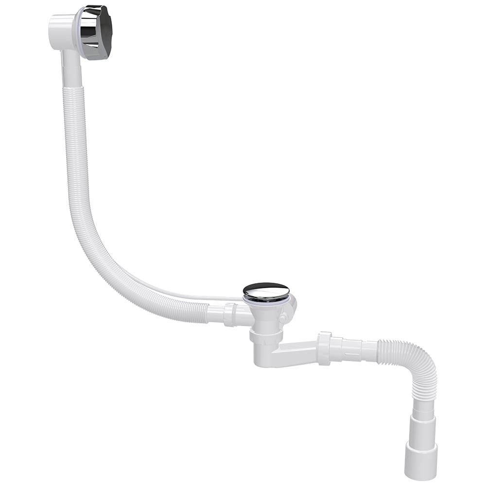 Сифон для ванн Bath Master выполнен в форме изогнутой трубки с коленом для слива воды, оборудован полуавтоматическим выпуском. Слой воды в колене препятствует появлению запаха из канализации. При выборе сифона учитывается размер свободного пространства под ванной. Сифон изготовлен из полипропилена. Диаметр сливного отверстия и отверстия перелива составляет 40 мм. Решетка выпуска выполнена из устойчивой к коррозии нержавеющей стали. Сифон с ревизией оснащен раструбом в верхней части.