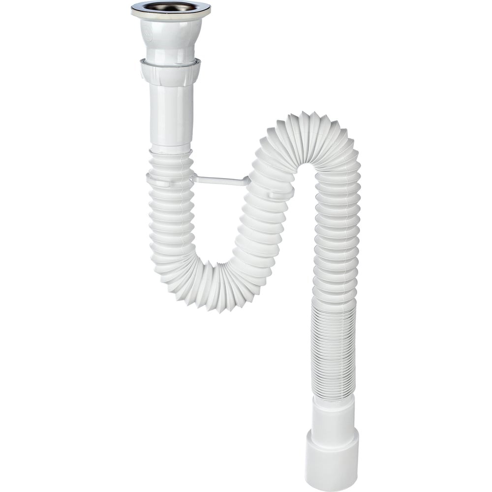Гофрированный сифон с выпуском 1½ х 40/50 мм длина L800 мм с хомутом жёсткости.Скорость слива 54,5 л/минВыпуск из нержавеющей стали 1 ½Длина 800 ммВыход 40/50 ммУкомплектован хомутом жесткости для сохранения гидрозатвора