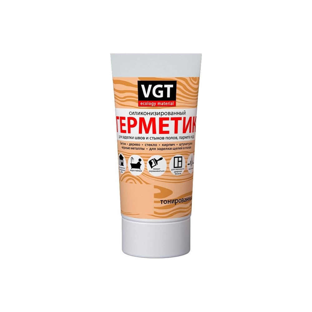 Силиконизированный герметик VGT мастика для внутренних и наружных работ, дуб, 0.16 л, туба 11607874 имеет хорошую адгезию к дереву, бетону, кирпичу, штукатурке, стеклу и черным металлам с предварительным грунтованием поверхности и пр. Надежно защищает от влаги. Отличается высокой эластичностью (50%) и прочностью. Герметик наносится сплошным слоем в герметизируемую щель или стык. Рекомендуемый температурный режим эксплуатации герметика от -40 до +70 градусов. Внимание! Не применять в местах постоянного контакта с водой и для склейки аквариумов.