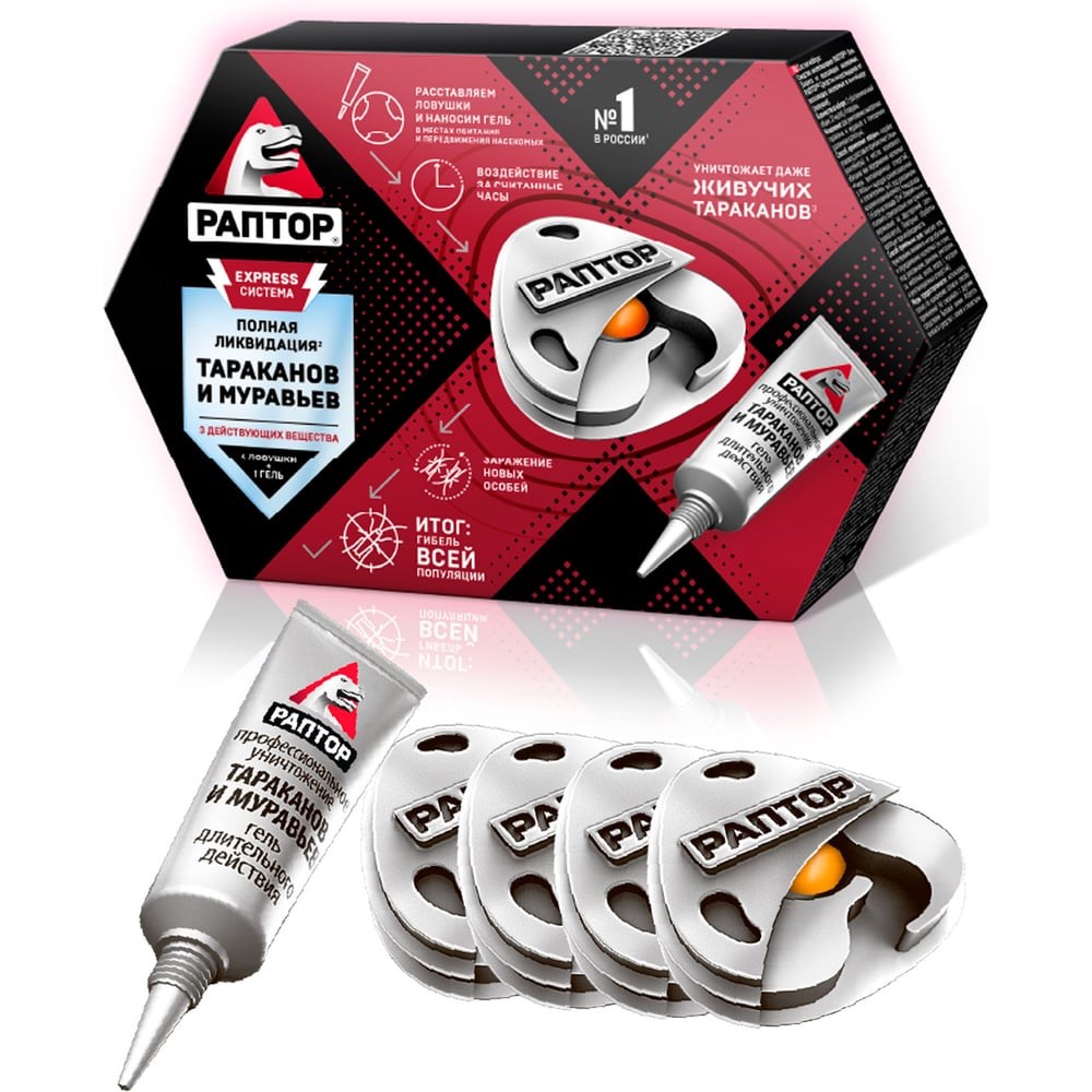 Система ликвидации тараканов и муравьев РАПТОР 4 ловушки + гель 35124 Bc0517 следует размещать в местах массового скопления тараканов и муравьев. Имеет высокую концентрацию трех действующих веществ. Данное средство не имеет запахов.