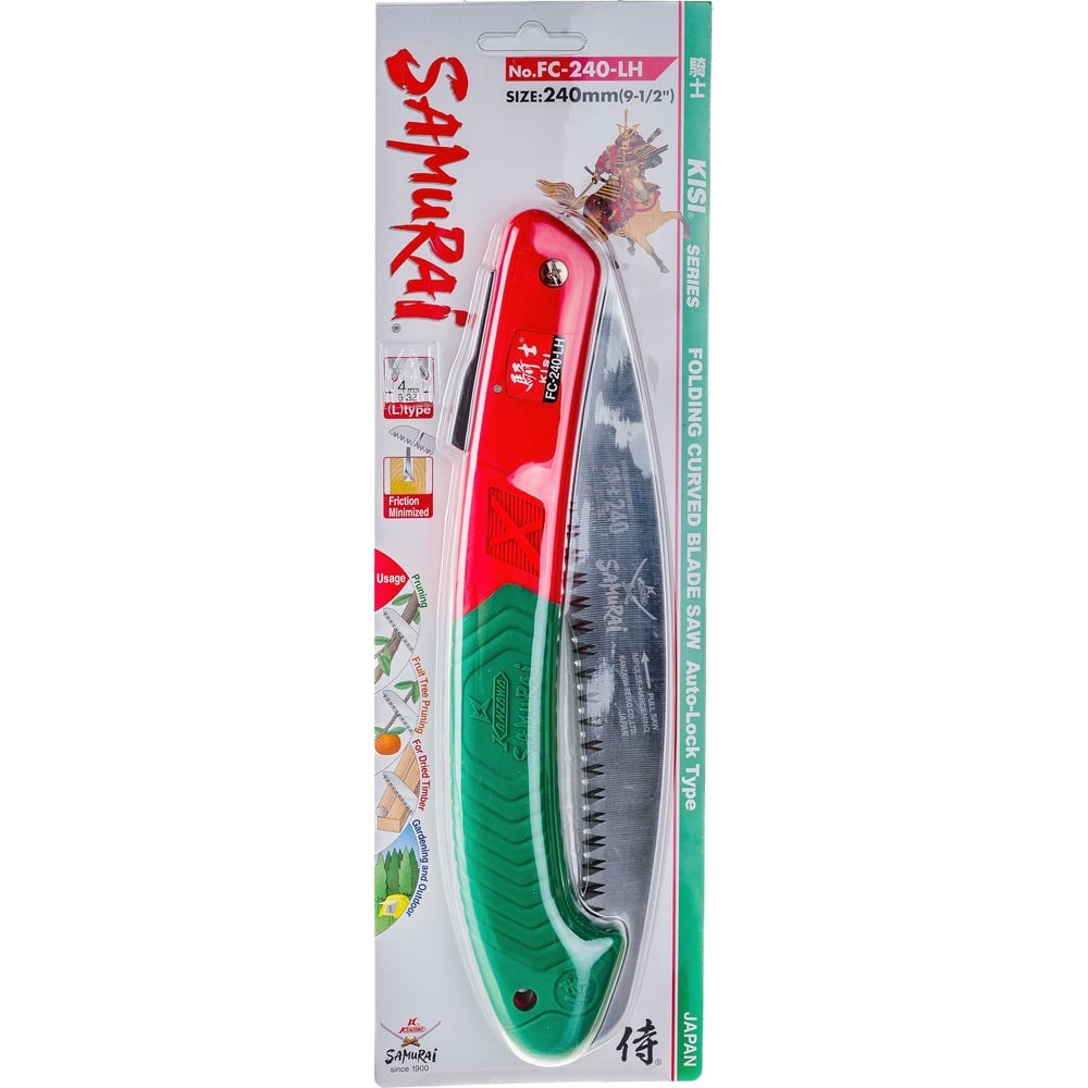 Пила складная с фиксатором изогнутое полотно SAMURAI FC-240-LH — надежный помощник по уходу за кустарниками и небольшими деревьями в саду. Она также пригодится на рыбалке и в турпоходе. Инструмент предназначен для распила сухой древесины и небольших деревьев, обрезки ветвей. Зубья закалены индукционными токами и имеют трехгранную заточку, что в сочетании с зауженным утонченным полотном обеспечивает легкий и ровный рез, в том числе обратный. Особенно пила эффективна при работе выше уровня плеча. Изделие обладает износоустойчивостью и способно выдерживать интенсивные нагрузки. Шаг зубьев - 4 мм.