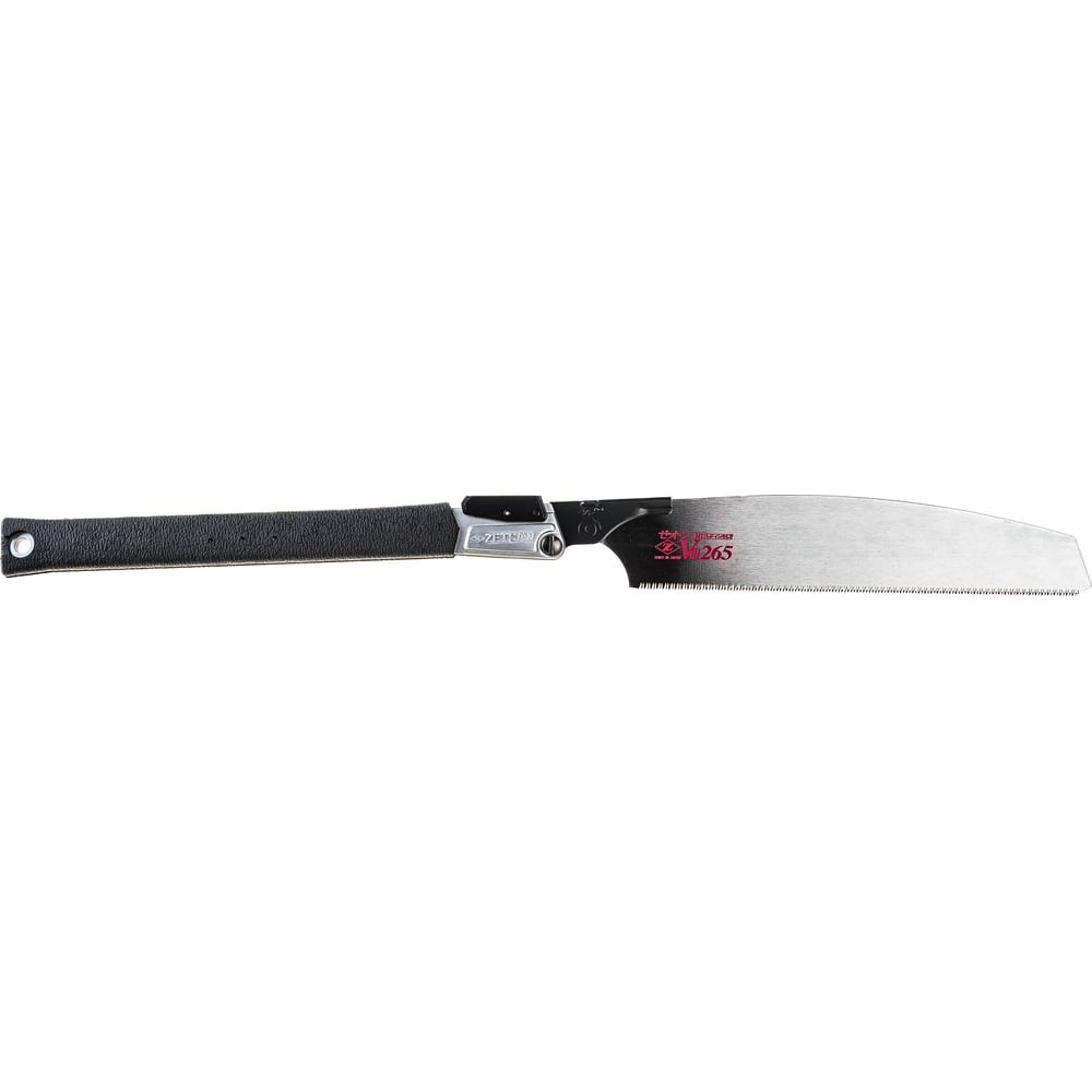 Пила Kataba VⅢ 265 ZETSAW • японская складная ручная пила нового поколения с универсальным лезвием с добавленными режущими зубьями, идеально подходит для столяров и плотников для резки листов с поперечным ламинированием и пиломатериалов различных размеров без учета направления волокон • пила Kataba VⅢ 265 ZETSAW имеет возможность складывания лезвия для удобства и безопасности при хранении и транспортировке и делает его более безопасным • безопасность использования инструмента обеспечивается наличием в нём блокировочного механизма • применяется жесткая импульсная обработка полотна дляпревосходной режущей способностии прочности • это складная пила, которая помещается в ящик для инструментов, рюкзак и поясную сумку • угол наклона ручки можно отрегулировать в две стороны в зависимости от рабочей среды • рукоятка отличается удобным хватом и наличием отверстия для крепления или подвеса• рукоять изготовлена из эластомерной смолы, которая не скользит даже при работе в перчатках