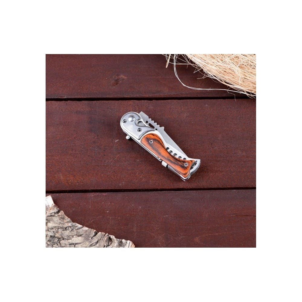 Складной автоматический нож Мастер К фонарик, рукоять под дерево 214553