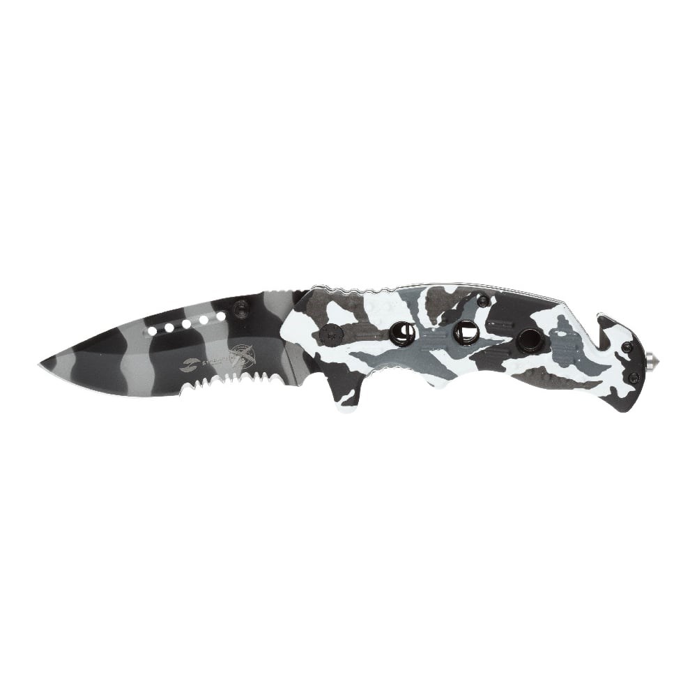 Цвет рукоятки: черно-белый камуфляж Особенность: с клипом Метод открывания складных ножей: шпенёк (подпальцевый упор на лезвии)