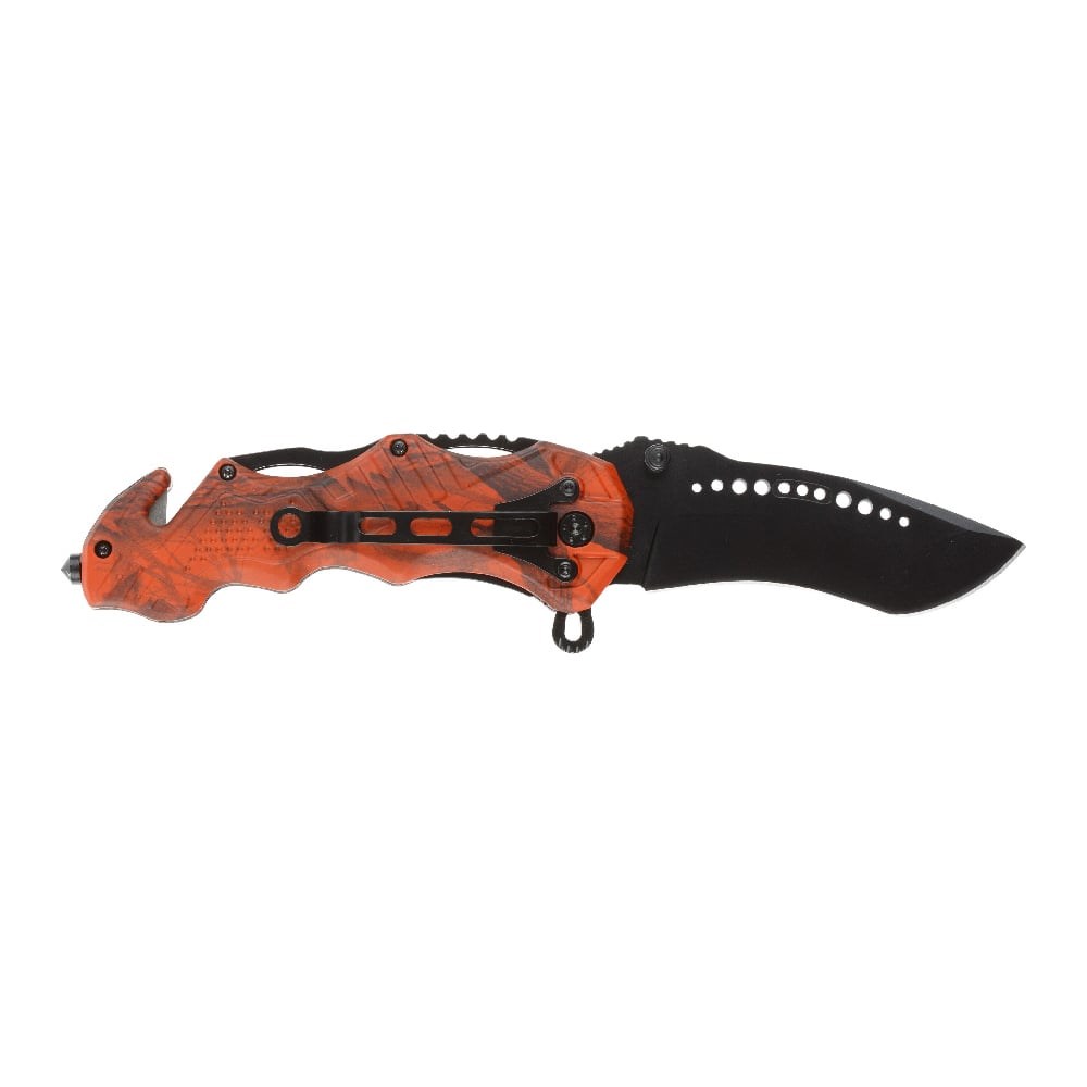 Цвет рукоятки: рыжий камуфляж с древесным узором Особенность: с клипом Метод открывания складных ножей: шпенёк (подпальцевый упор на лезвии)
