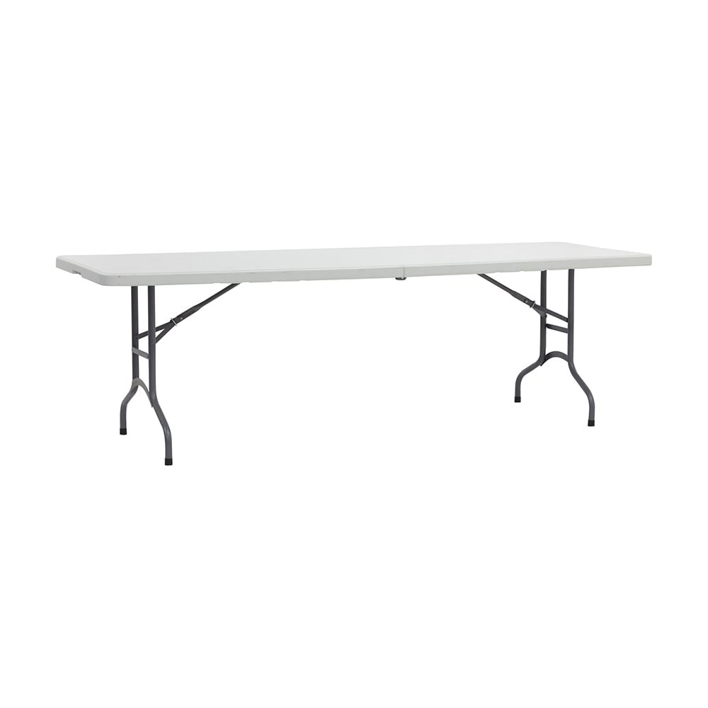 В сложенном виде модель занимает минимум места, а при необходимости ее можно перевезти в багажнике легкового автомобиля. В собранном состоянии стол обладает внушительными размерами: при длине столешницы в 240 сантиметров за ним с легкостью разместятся как минимум 6 человек. Мебель с такими параметрами рекомендована для крупных выездных мероприятий – в том числе и для тех, где предусмотрен фуршет. Надежность и функциональность модели обеспечивает продуманная конструкция. Для каркаса используется стальная труба особой прочности, а столешница выполнена из 100% не переработанного полиэтилена HDPE – материала, известного упругостью, стойкостью к нагрузкам и механическим повреждениям. Стол складной можно использовать как обеденный для дачи и дома. Удобный вариант для пикника.