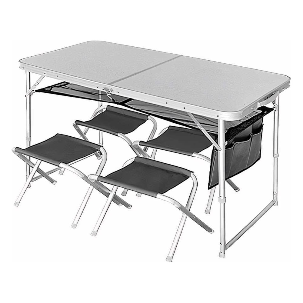 Складной стол + 4 стула Norfin RUNN NF Alu NF-20310 - набор для активного отдыха на природе. Пригодится при пикнике или походе, а так же и на садовом участке во время обеда. Быстро собирается. За столом могут разместиться 4 человека. Все составляющие набора изготовлены из высококачественных прочных материалов. Стол трансформируется в чемодан, который удобно брать с собой в поездки, внутрь него легко помещаются все стулья. Длина стола составляет 1.2 м. Габариты в сложенном виде: 600х600х80 мм.