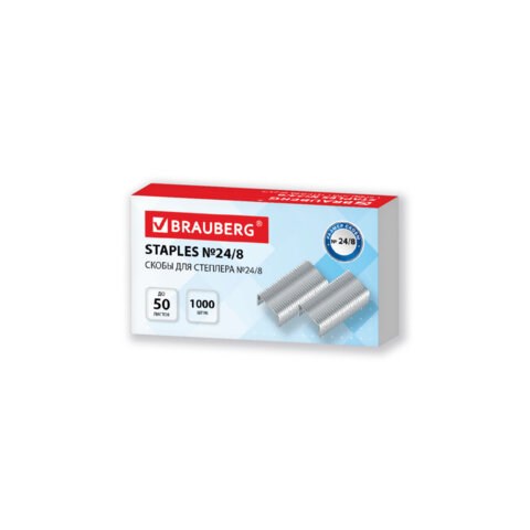 Скобы для степлера №24/8, 1000 штук, BRAUBERG, до 50 листов, 274244
