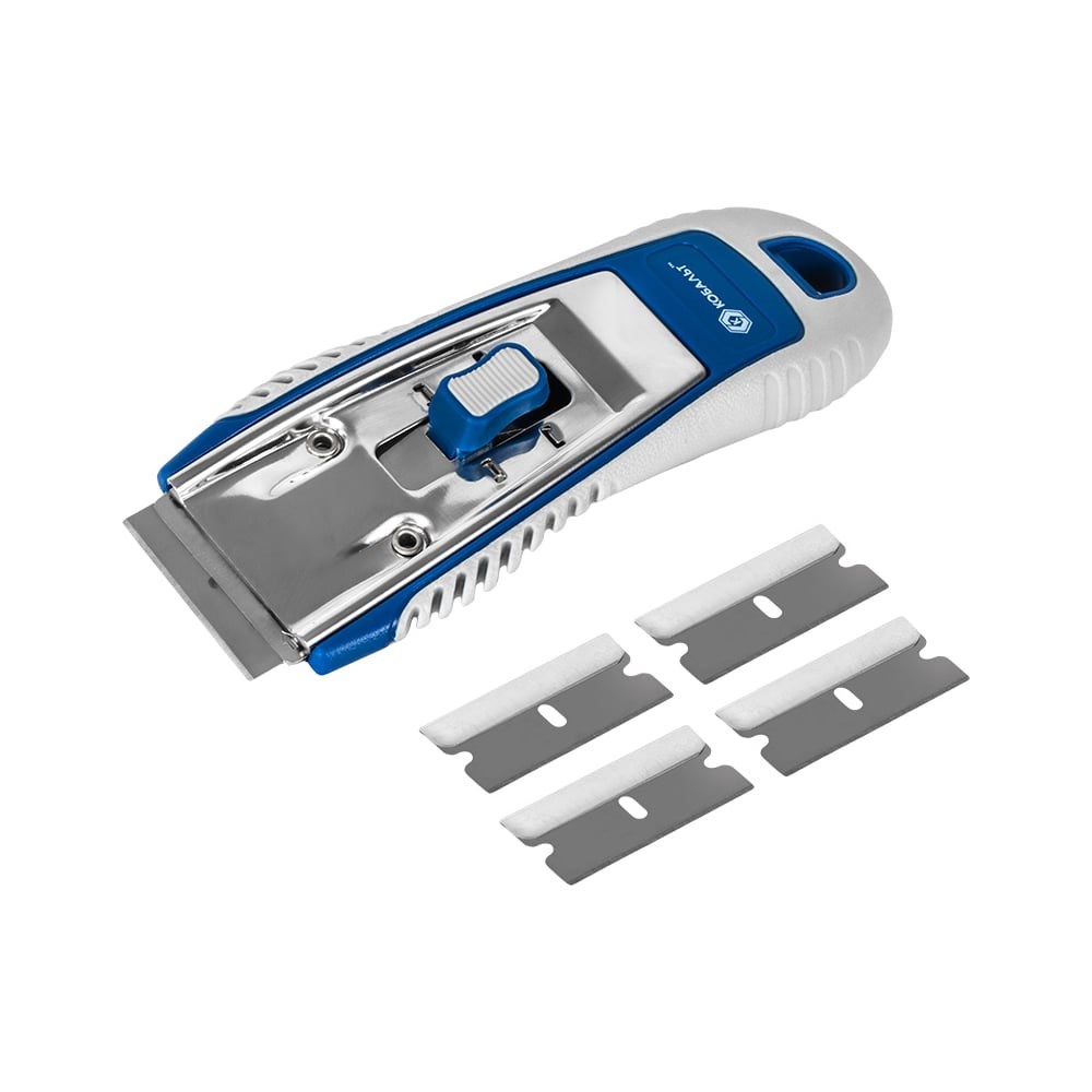 Применяется для очистки гладких поверхностей от различных загрязнений. Имеет механизм быстрой смены лезвия. В комплекте 5 лезвий. Ширина лезвия 39 мм.