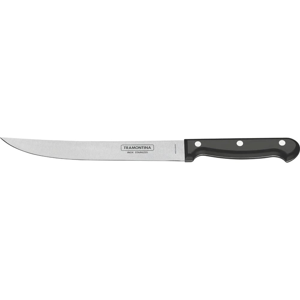 Слайсер Tramontina Ultracorte предназначен для нарезки различных продуктов. Благодаря уникальному методу закалки в несколько этапов сталь приобретает особую пластичность, коррозийно и жаростойкость, сохраняя твердость порядка 53 единиц по шкале Роквелла. Как результат, ножи TRAMONTINA требуют более редкой правки и заточки, что обеспечивает более долгий срок службы по сравнению с ножами из аналогичной стали других производителей. Рукоятки серии Ultracorte выполнены из полипропилена с 45% карбоната и нетоксичным противомикробным покрытием Microban ®, эффективно препятствующим размножению бактерий и сохраняющим свои свойства даже в случае механического повреждения 24 часа в сутки.