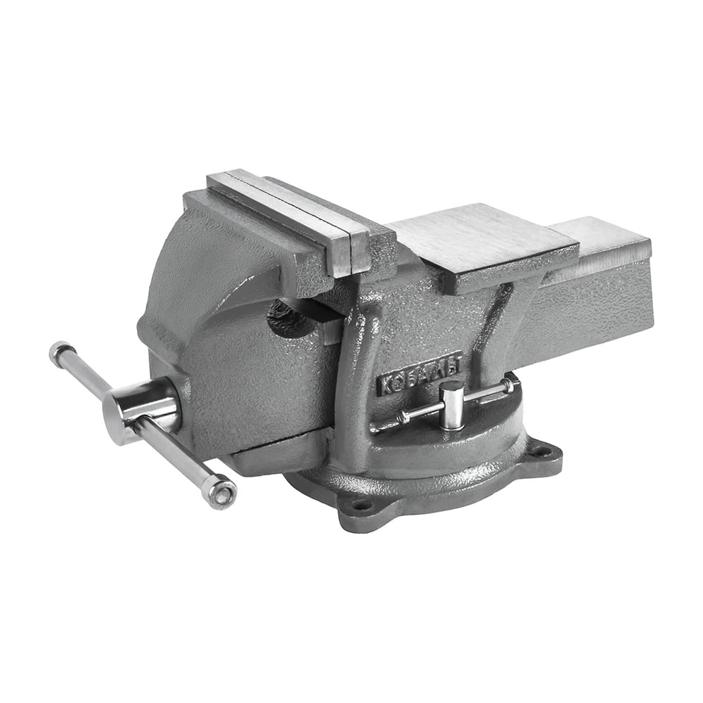 Стальные поворотные слесарные тиски КОБАЛЬТ 248-979 - надежный в работе зажимной инструмент. Конструктивной особенностью модели является корпус с возможностью поворота на 360 градусов. Устройство отличается высокой прочностью и устойчивостью к износу. Твердость губок - HRC 59-63.