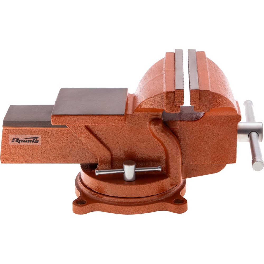 Поворотные слесарные тиски Sparta 186275 с наковальней, ширина губок 150 мм, — это небольшой инструмент для захвата деталей до 125 мм. Будут полезны в частной мастерской или гараже для удобства обработки крупногабаритных заготовок.