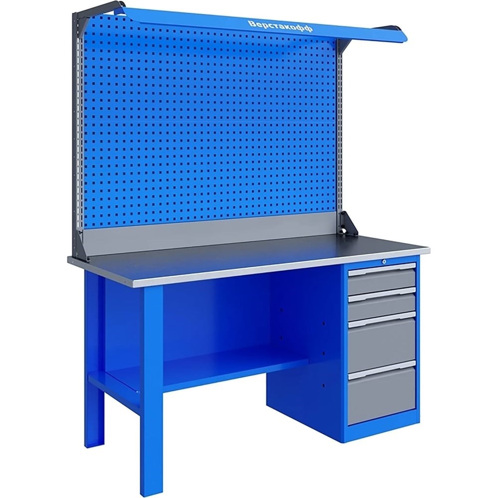 Верстак предназначен для выполнения сборочных, ремонтных, слесарных, монтажных и других видов работ на производстве, в сервисных центрах, мастерских, гаражах, а также для обучения технологии в учебных заведениях. Верстак имеет декларацию соответствия ТР ТС 025/2012 «О безопасности мебельной продукции». Верстак имеет сертификат соответствия ГОСТ Р 58863-2020 «Столы производственные. Верстаки из металла. Общие технические условия».Верстак представляет собой сборно-разборную конструкциюОпорные элементы выполнены сварными из холоднокатаной сталиКомплектуется полкой-стенкой, расположенной под столешницей для удобного размещения габаритного инструмента и оснасткиВсе металлические элементы покрыты полиэфирной порошковой краской, обеспечивающей хорошую износостойкость покрытия и невосприимчивость его к моющим средствам и смазочным веществамЦвет и текстура покрытия корпуса тумб, опор, полки-стенки, экранов и комплектов освещения RAL 5015, гладкая, полуматоваяЦвет и текстура покрытия ящиков и дверок верстака, кронштейнов экранов и косынок RAL 7037, гладкая, глянцеваяЦвет и текстура покрытия накладок ручек ящиков и дверок RAL 9006, гладкая, глянцеваяСтолешница состоит из листа влагостойкой фанеры марки ФСФ толщиной 24 мм, которая покрыта лаком-антисептиком и листом оцинкованной холоднокатаной стали толщиной 1,2 ммМаксимальная масса груза, равномерно распределенного по столешнице - 750 кгМаксимальная масса груза, распределенного по поверхности полки и полки стенки, составляет 30 кгТумба верстака - сварнаяЯщики в тумбе устанавливаются на шариковых телескопических направляющих полного выдвиженияВ тумбе P4 установлено два малых и два больших ящикаВнутренние размеры малых ящиков (ВхШхГ), не более: 103х397х520 ммВнутренние размеры больших ящиков (ВхШхГ), не более: 222х397х520 ммТумбы с ящиками снабжены общим центральным замком с поворотом ригеля 180 градусов и подпружиненной тягойВ комплекте два ключаДвойной экран (перфорированные панели) верстака выполнен с квадратной перфорацией 12х12 мм с шагом 38 мм для установки крючков, держателей и других аксессуаровЭкран крепится к столешнице с помощью специальных кронштейновМаксимальная масса груза, равномерно распределенного по поверхности экрана, составляет 21 кгКомплект освещения устанавливается над верстакомВ комплекте: защитный козырек, кронштейны и лампа с магнитными креплениями, которые позволяют менять ее положение