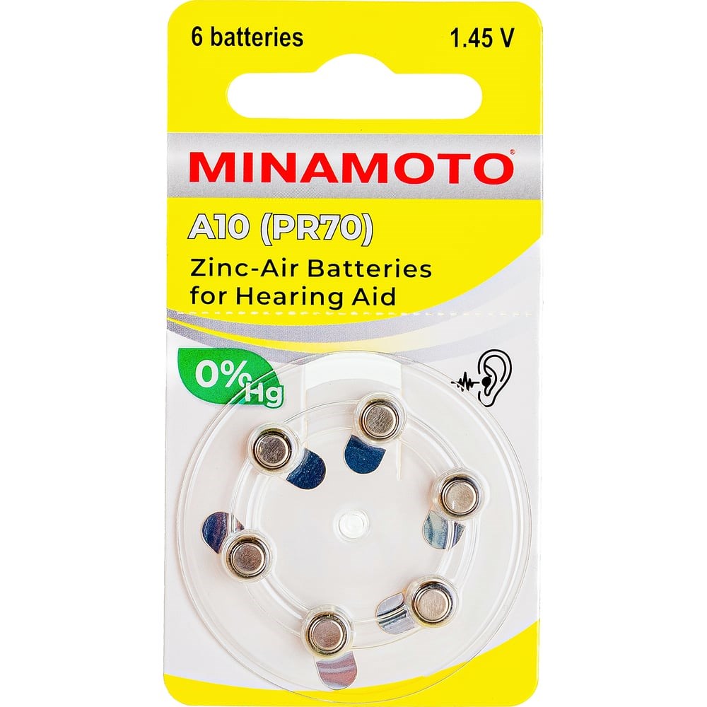 Слуховая батарейка Minamoto A10 PR70, 6 card 8810