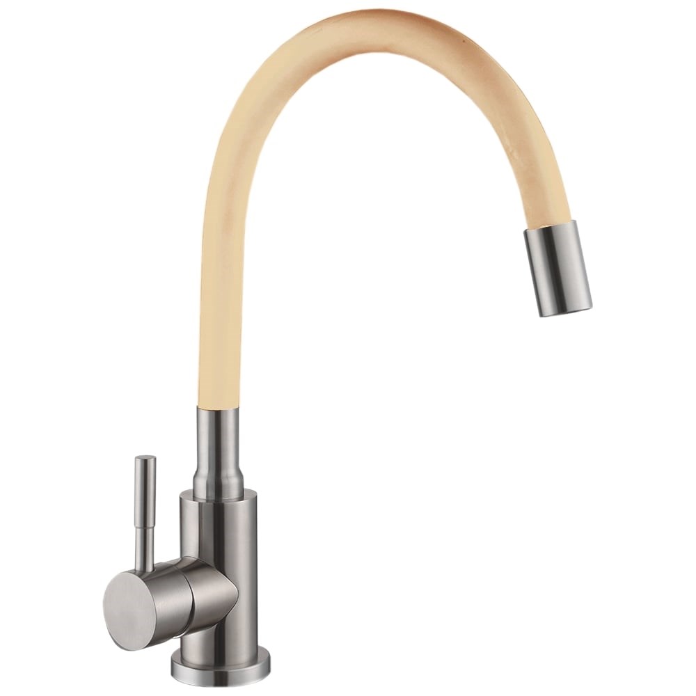 Смеситель для кухни АНТЕЙ Дюна шар. с высоким силиконовым изливом бежевый, нерж.сталь 511521 1/10 511521-ANT