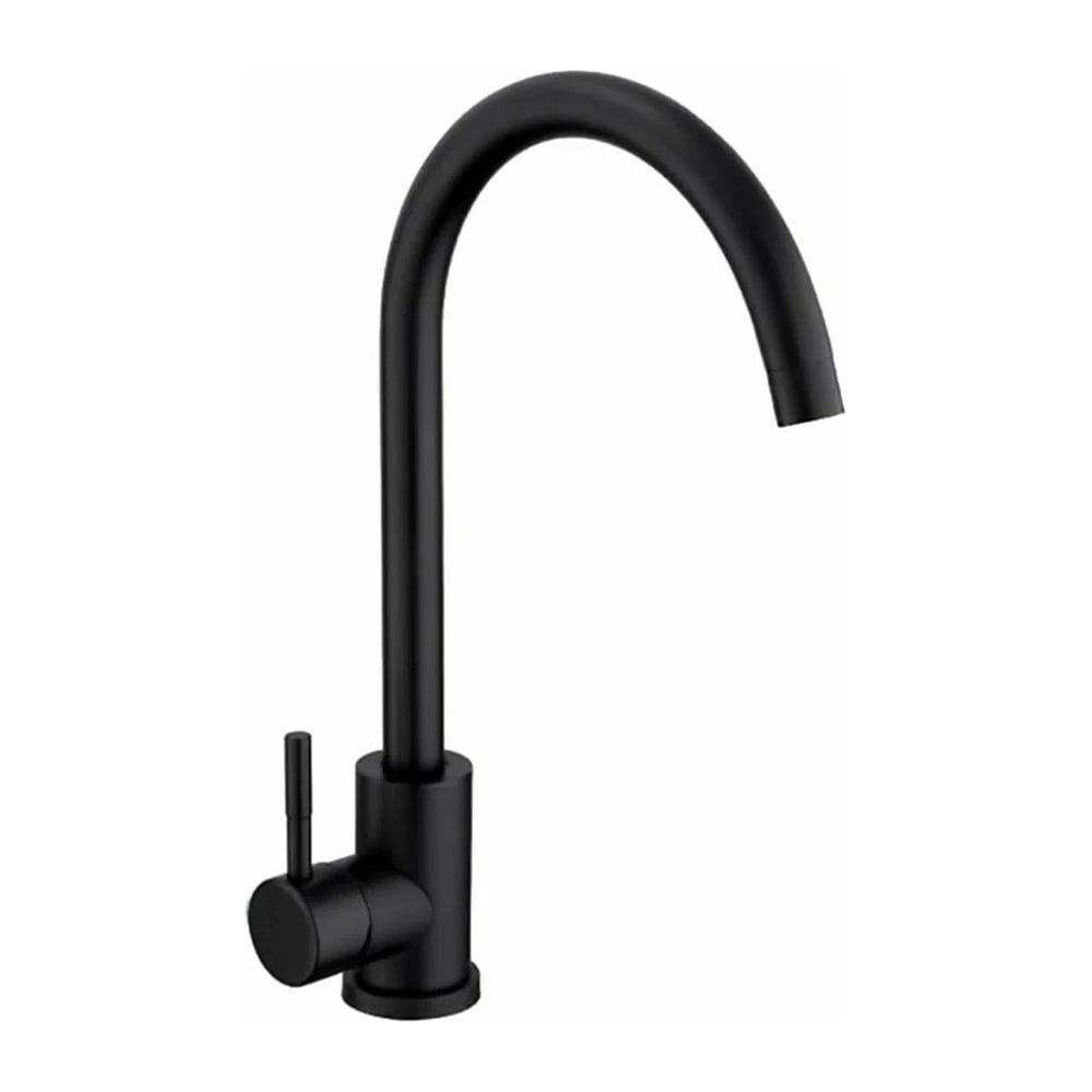 Смеситель для кухни АНТЕЙ®, серия Булат - Корпус: нержавеющая сталь (SUS 304) - Цвет: черный - Картридж: ø35 мм, с керамическими пластинами - Излив: высокий, поворотный - Высота (корпус + излив): 374 мм - Аэратор: пластиковый, съемный, внутр. резьба Ø22мм В комплекте: гибкая подводка ½ дюйма 350 мм – 2 шт., крепеж с системой быстрого монтажа FAST FIX (гайка).