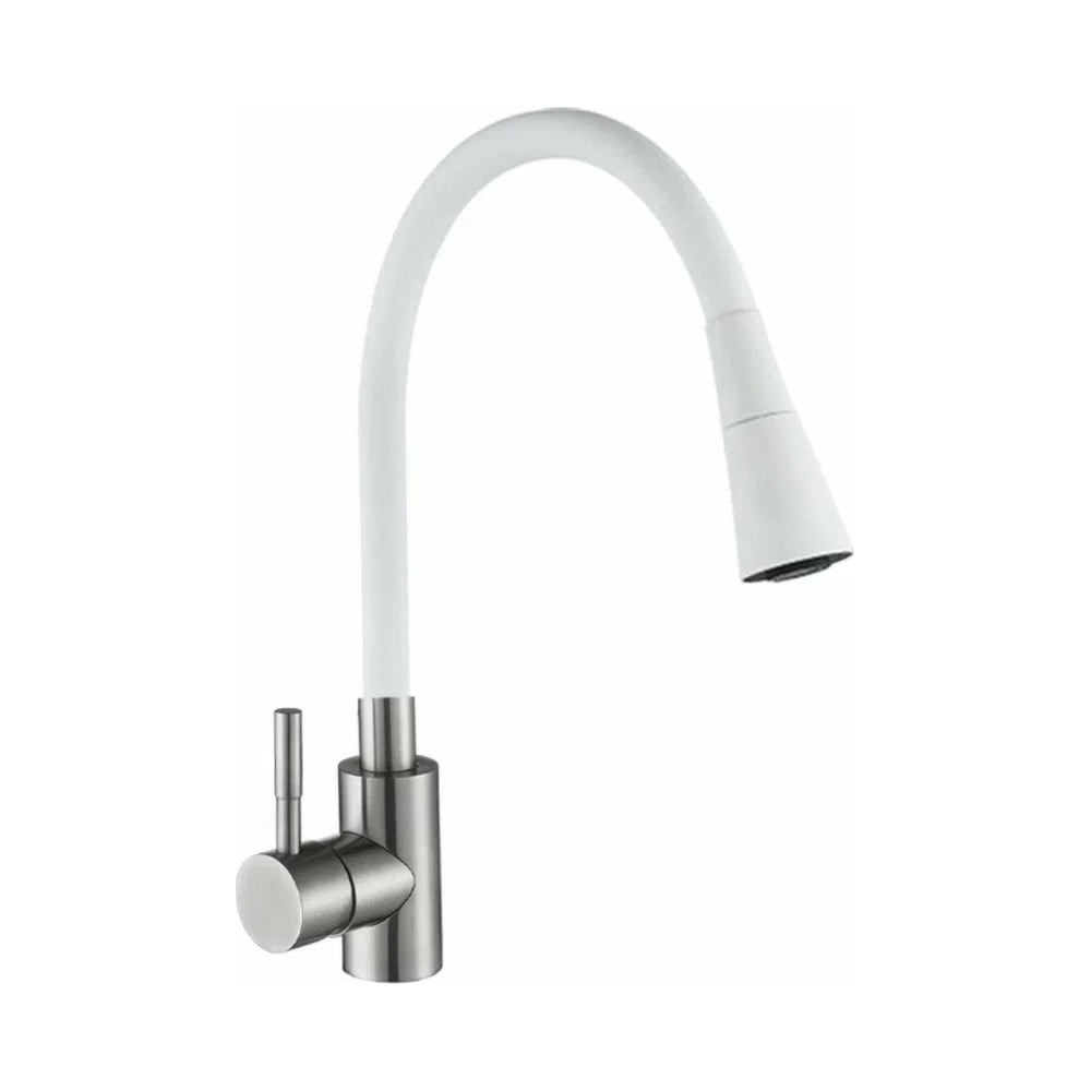 Смеситель для кухни Антей Мармелад с силиконовым изливом, белый, нержавеющая сталь 1/10 572571-ANT