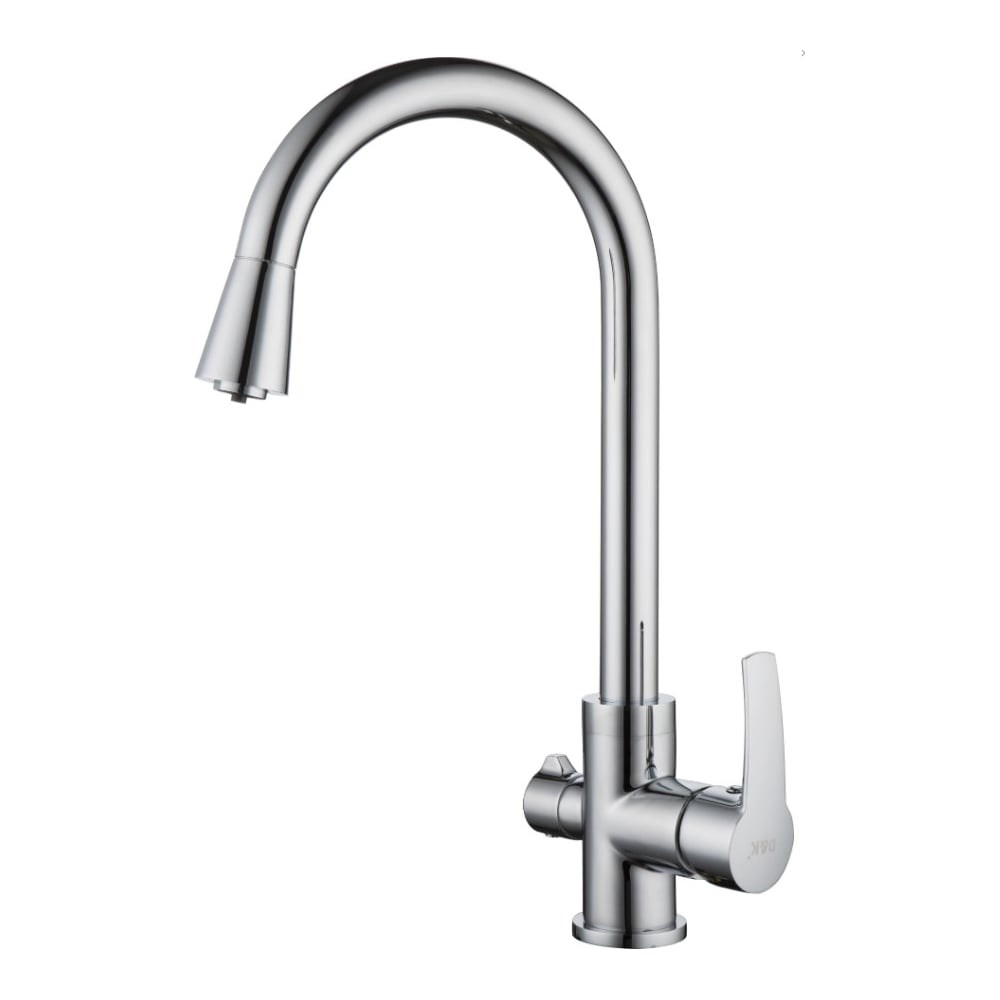 Смеситель для кухни с подключением к фильтру D&K Rhein.Valerius DA1361601 - Бесплатное гарантийное обслуживание - 10 лет; - Смесители из латуни высокого качества, безопасны для людей и домашних животных из-за пониженного содержания свинца; - Блестящее хромированное покрытие обладает высокими защитными и декоративными свойствами; - Протестирован на 500 000 циклов включения, что составляет более 30 лет повседневного использования, семьи из четырёх человек; - Аэратор Neoperl экономит воду за счет смешивания с воздухом, струя становится ровнее и мягче, снижая уровень шума; - Гибкая подводка 40 см идёт в комплекте для быстрой установки.