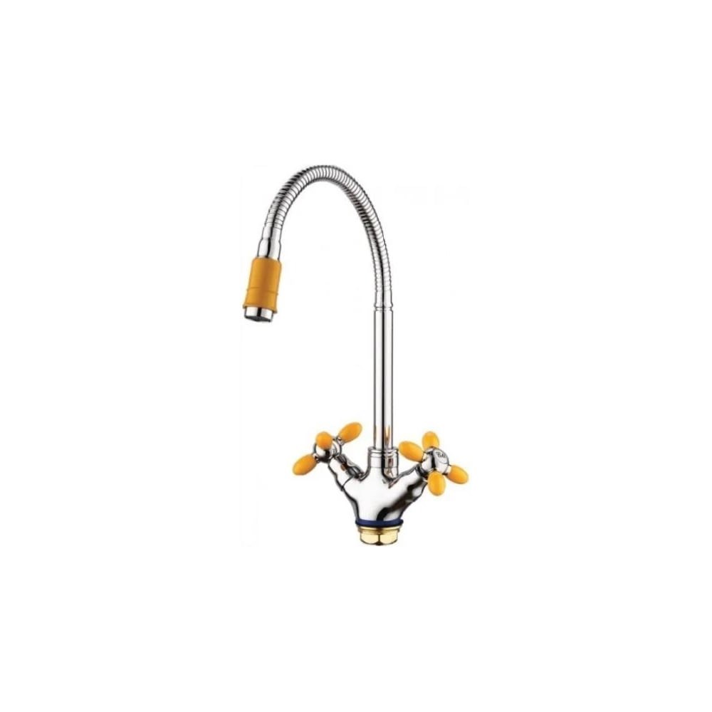 A43127-9 смеситель для кухни, H=400 мм хром/оранжевый цинковый сплав кранбуксы с керамическими пластинами 90° излив гибкий в металл. оплётке: H=240 мм гибкая подводка: 450 мм в комплекте крепёж: гайка