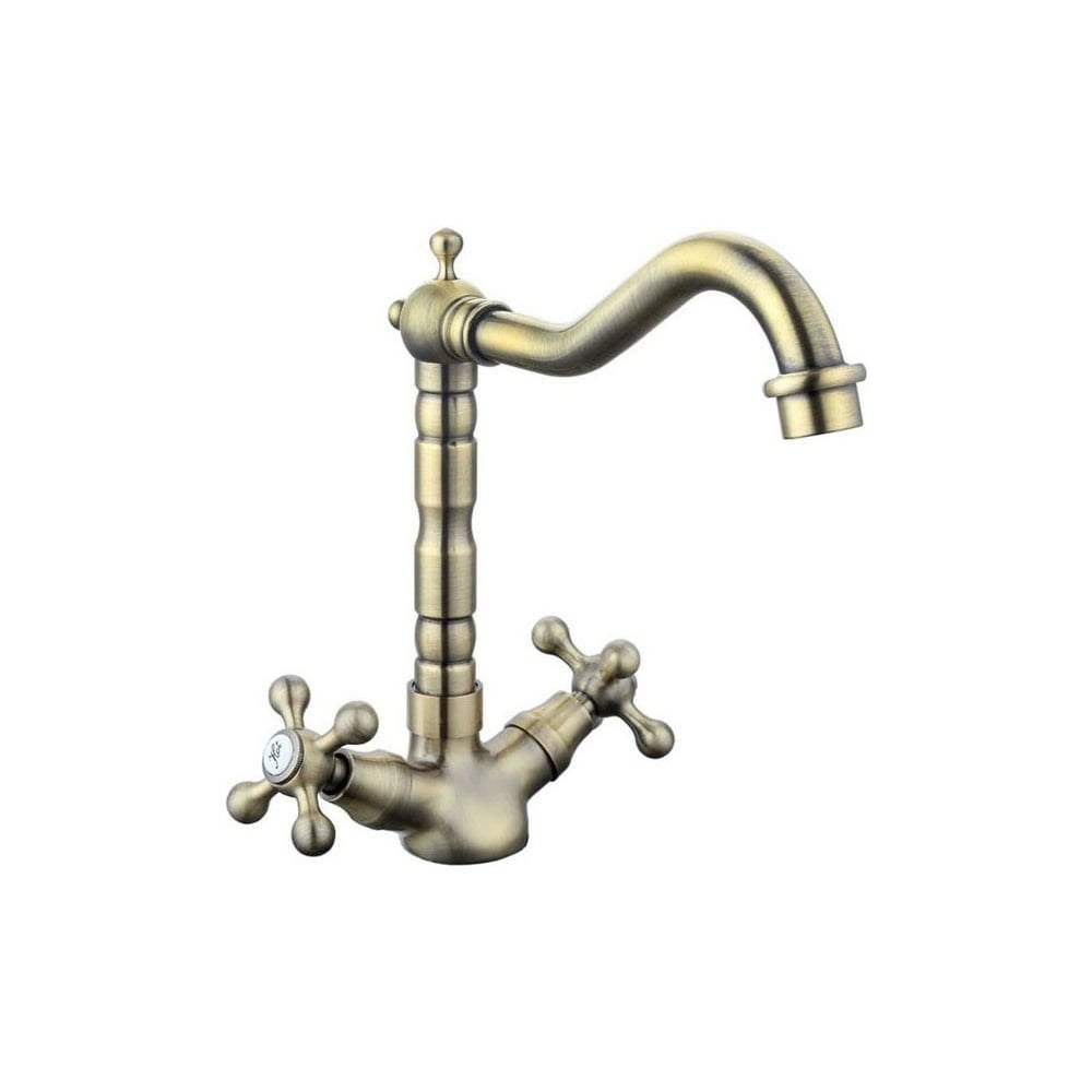 A4408-4 смеситель для кухни, H=232 мм old bronze латунь кранбуксы с керамическими пластинами 90° излив: H=183 мм гибкая подводка: 450 мм в комплекте крепёж: шпилька