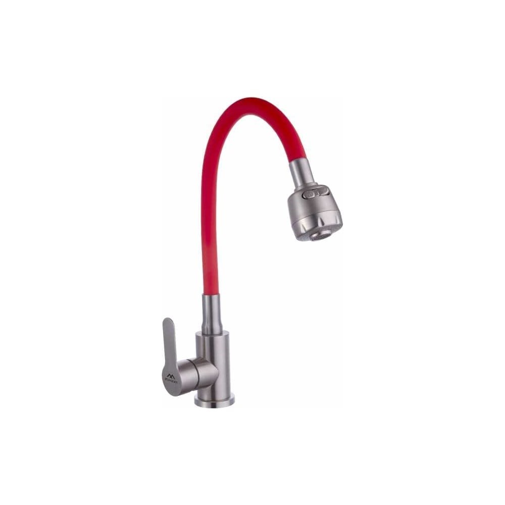 Смеситель сочетает в себе современные технологии и универсальный современный дизайн. Превосходно дополнит любой интерьер кухни. Изготовлен из качественной нержавеющей стали SUS304 и силикона, что сводит к минимуму риск образования внутренней коррозии. Керамический картридж 35 мм обеспечивает точную настройку температуры и напора воды. Качественный аэратор в смесителе обеспечит равномерный поток, в силу того, что сеточка рассеивает напор, вода становится мягче. Сеточка отфильтрует примеси и сэкономит более 5 кубов воды на протяжении года.