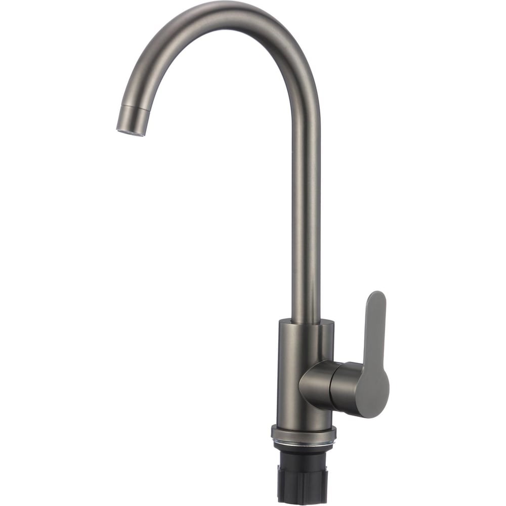 Смеситель кухонный для раковины - идеальное решение для тех, кто ищет сочетание высокого качества и доступной цены. Оснащен высоким поворотным изливом и водосберегающим съемным аэратором для экономии воды и бесшумной работы, а так же экономичным картриджем для регулировки горячей и холодной воды. Кран для кухни выполнен в классическом стиле и подойдет практически под любой дизайн, произведен качественно и прослужит долгие годы. Изготовлен из прочной нержавеющей пищевой стали и имеет долгий срок службы, как латунные смесители. Смеситель устанавливается на одно отверстие в столешнице, а также присоединяется к трубам гибкими шлангами, которые в комплекте. Он будет на протяжении многих лет блестящим, красивым, прочным и отлично подойдет на любые раковины. Оснащен рычагом управления, который легко регулирует поток воды и температуру.