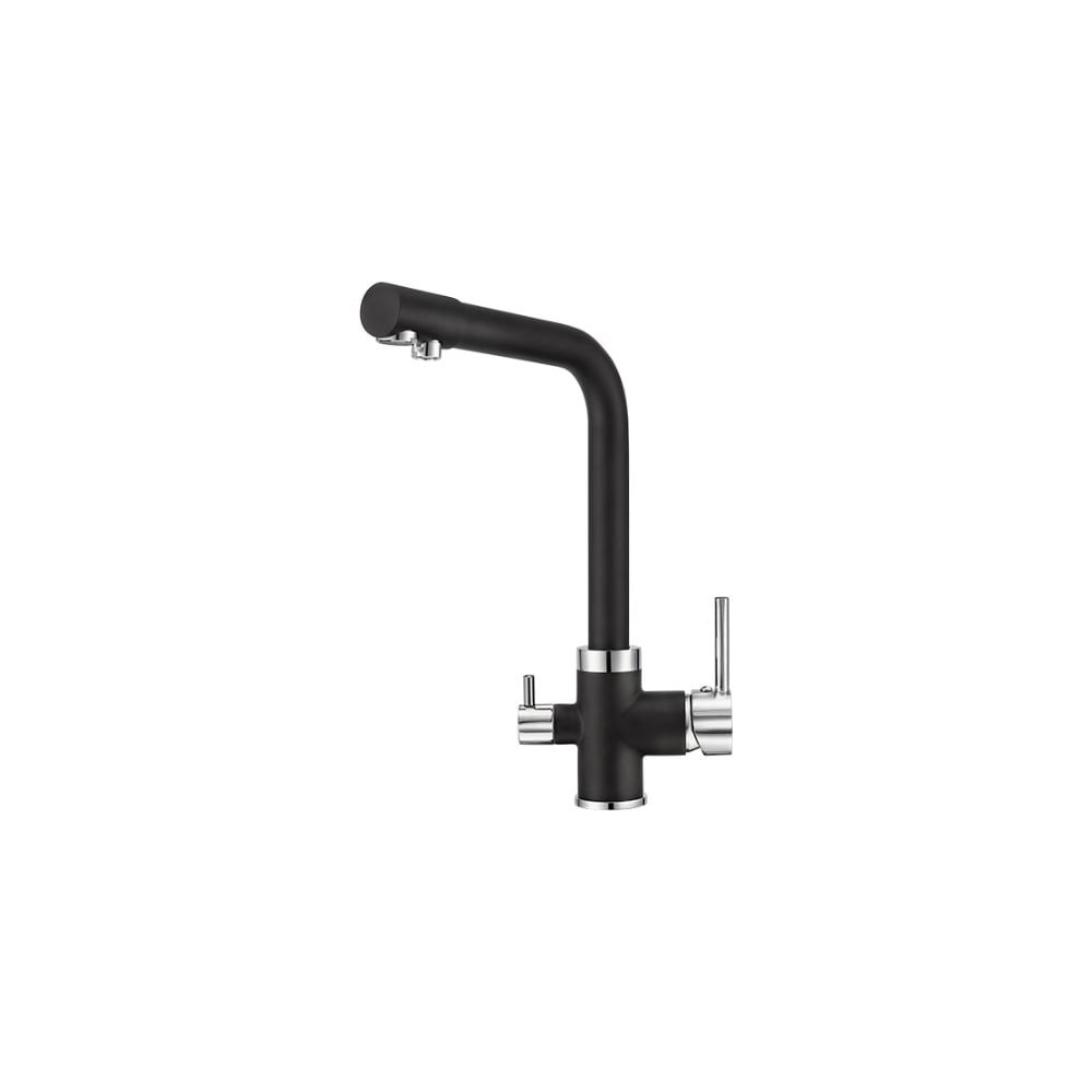 Смеситель Granula - изготовленный российским производителем из прочных материалов, его латунный корпус гарантирует долговечность. Гибкий высокий излив облегчает мытье посуды любых размеров, а двухрычажная система оснащена отдельным краном для фильтрованной воды. Эта модель - идеальное сочетание функциональности и эстетики для кухни.