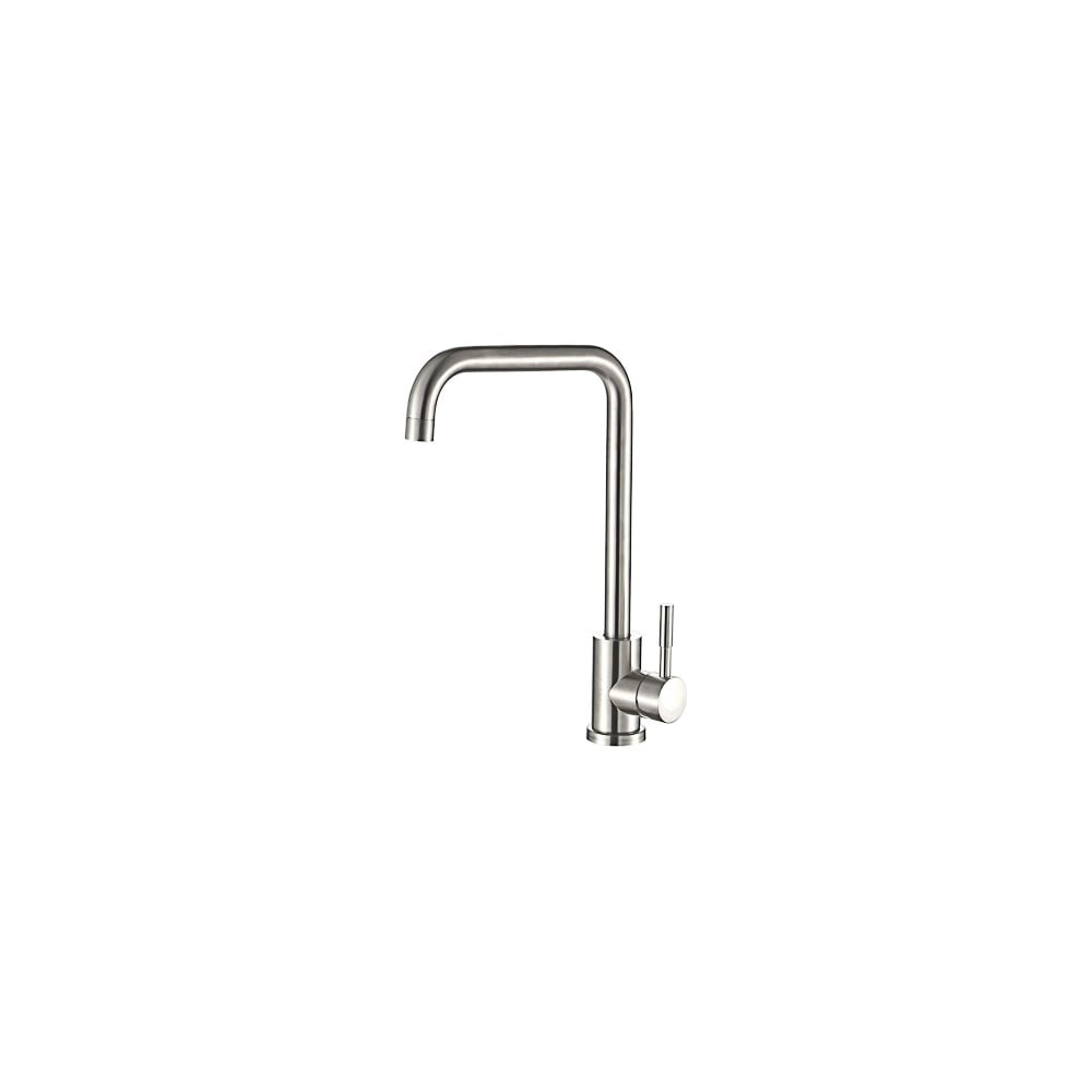Смеситель для кухни СоюзКран с поворотным изливом. Излив высотой 30 см удобен для неглубоких моек. Смеситель однорычажный: настраивайте напор и температуру воды быстро одной рукой. Водозапорный механизм - керамический картридж 35 мм. В картридже нет прокладок, из-за которых в смесителях бывают течи. Служит до 10 лет. Работает тихо и плавно. Смеситель из нержавеющей стали. Служит долго. Не портится от перепадов температуры воды. Ударопрочный. Не выделяет вредные вещества. Крепление смесителя на гайке - можно установить на тонкую мойку. Керамический картридж чувствителен к качеству воды. Чтобы смеситель прослужил дольше, установите фильтры очистки воды.