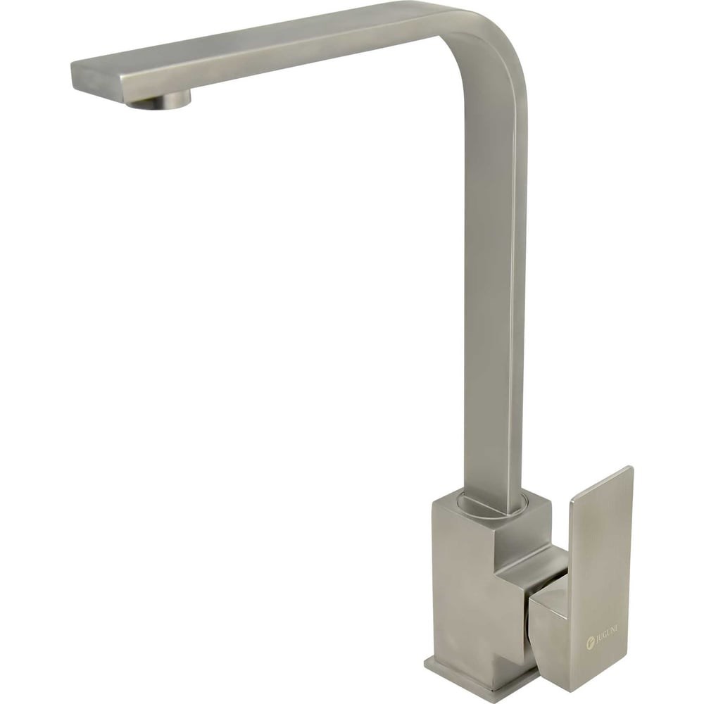 Смеситель для кухни Juguni рычажный серии Parus, 0402.174 Кухонный смеситель (кран) предназначен для использования в городских квартирах или частных домах, имеет современный дизайн и изготовлен из материалов и комплектующих, отвечающих современным стандартам качества. Тип крепления – гайка. Смеситель имеет поворотный высокий излив (гусак) оригинальной плоской формы, что добавит фантастический образ кухне, длина которого 190 мм, эко-сеточка аэратора выполнена из долговечного ABS-пластика, насыщает воду кислородом, и позволяет уменьшить ее расход. Корпус смесителя выполнен из пищевой нержавеющей стали марки AISI304, гипоаллергенный материал, не раздражает кожу. Регулировать температуру воды и выбирать оптимальный напор струи удобно посредством ручки – рычага, выполненного из металла. Запорный механизм смесителя - керамический картридж 35 мм в корпусе из экологичного АВС-пластика, который не выделяет вредных веществ под воздействием высоких температур. Все элементы конструкции смесителя устойчивы к коррозии, износу и механическим повреждениям, что продлевает период использования изделия. Условия ухода за смесителем и его поверхностью описаны в паспорте, вложенном в упаковку.
