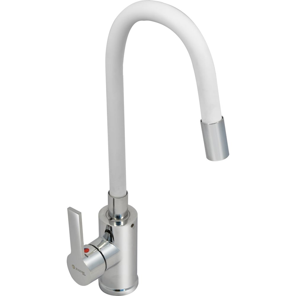 Кухонный смеситель (кран) предназначен для использования в городских квартирах или частных домах, имеет современный дизайн и изготовлен из материалов и комплектующих, отвечающих современным стандартам качества. Данная модель представляет собой надежный и современный смеситель с горизонтальным способом установки, устанавливается на мойку или столешницу. Тип крепления – гайка. Смеситель имеет гибкий силиконовый излив (гусак) белого цвета, эко-сеточка аэратора выполнена из долговечного ABS-пластика, насыщает воду кислородом, позволяет уменьшить ее расход и предотвращает от разбрызгивания. Корпус смесителя выполнен из прочного сплава алюминия с кремнием с хромированным покрытием. Регулировать температуру воды и выбирать оптимальный напор струи удобно посредством ручки - рычага. Запорный механизм смесителя - керамический картридж 35 мм в корпусе из экологичного АВС-пластика, который не выделяет вредных веществ под воздействием высоких температур. Все элементы конструкции смесителя устойчивы к коррозии, износу и механическим повреждениям, что продлевает период использования изделия. Смелость в дизайнерском цветовом решение этой модели смесителя добавит Вашей кухне веселого озорства и ярких впечатлений! Гарантия от производителя на корпус смесителя 5 лет, на комплектующие 1 год. В комплекте имеется тестовая подводка, для проверки работы смесителя. Гарантия на подводку не распространяется! При установке рекомендуем заменить подводку.