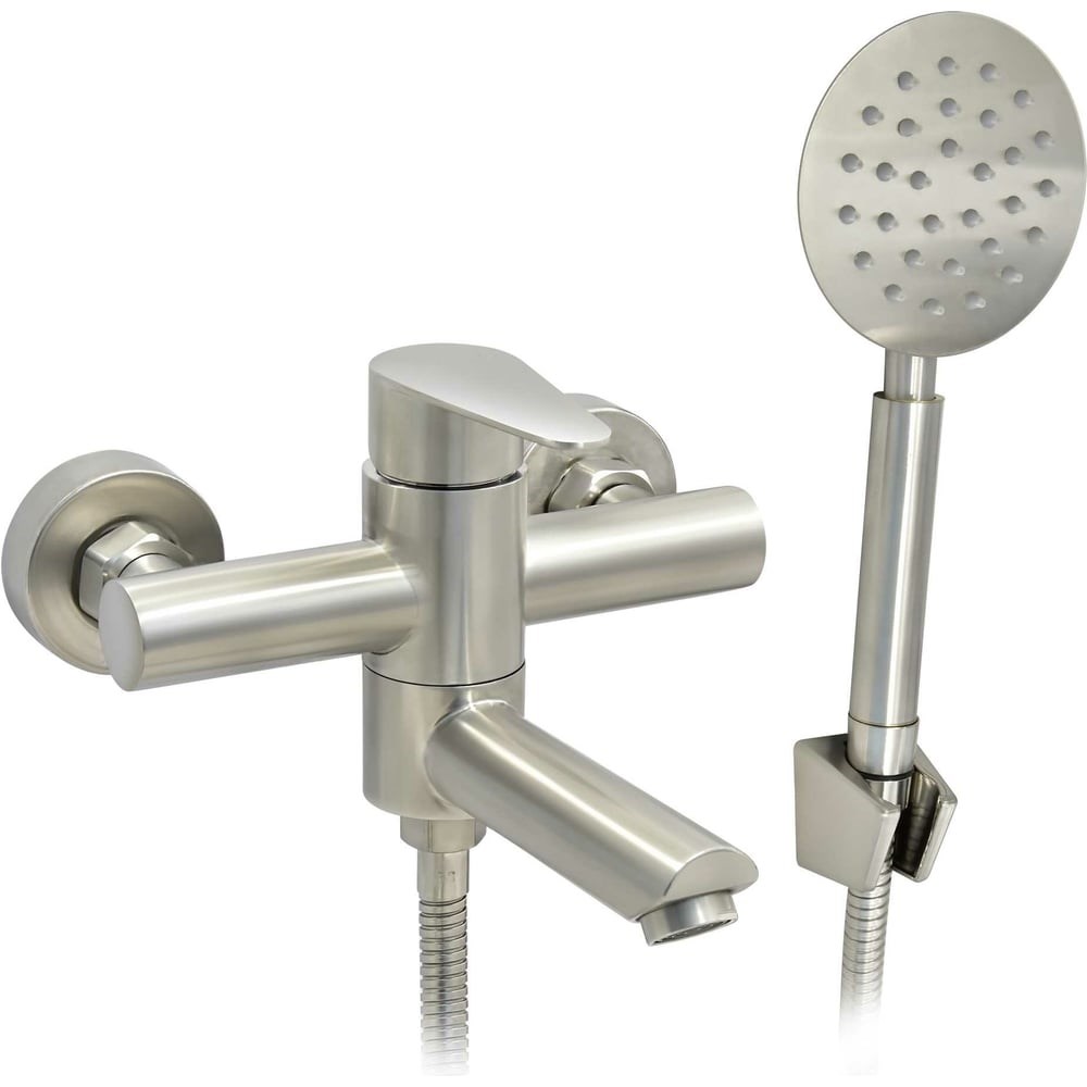 Смеситель для ванны Juguni с коротким изливом, нерж. сталь AISI304, шланг 150 см, лейка, 0402.166
