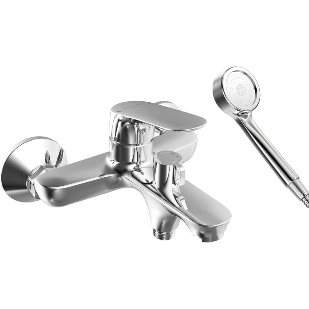 Хотите приобрести универсальный смеситель для ванной с душевой лейкой, который идеально подойдет для любого интерьера? Отличным решением станет смеситель с традиционным коротким изливом японского бренда TOKITO. Дизайнерская модель серии TAKASE имеет красивые округлые линии, подчеркивающие современный стиль интерьера. Одним из важных достоинств смесителя является его лаконичный дизайн. Небольшой фиксированный излив с душевой лейкой удобно крепится к стене и занимает совсем немного места. Чтобы принять душ, не придется отворачивать кран в сторону. Благодаря хромовому покрытию изделия имеют благородный блеск и не ржавеют под воздействием влаги.