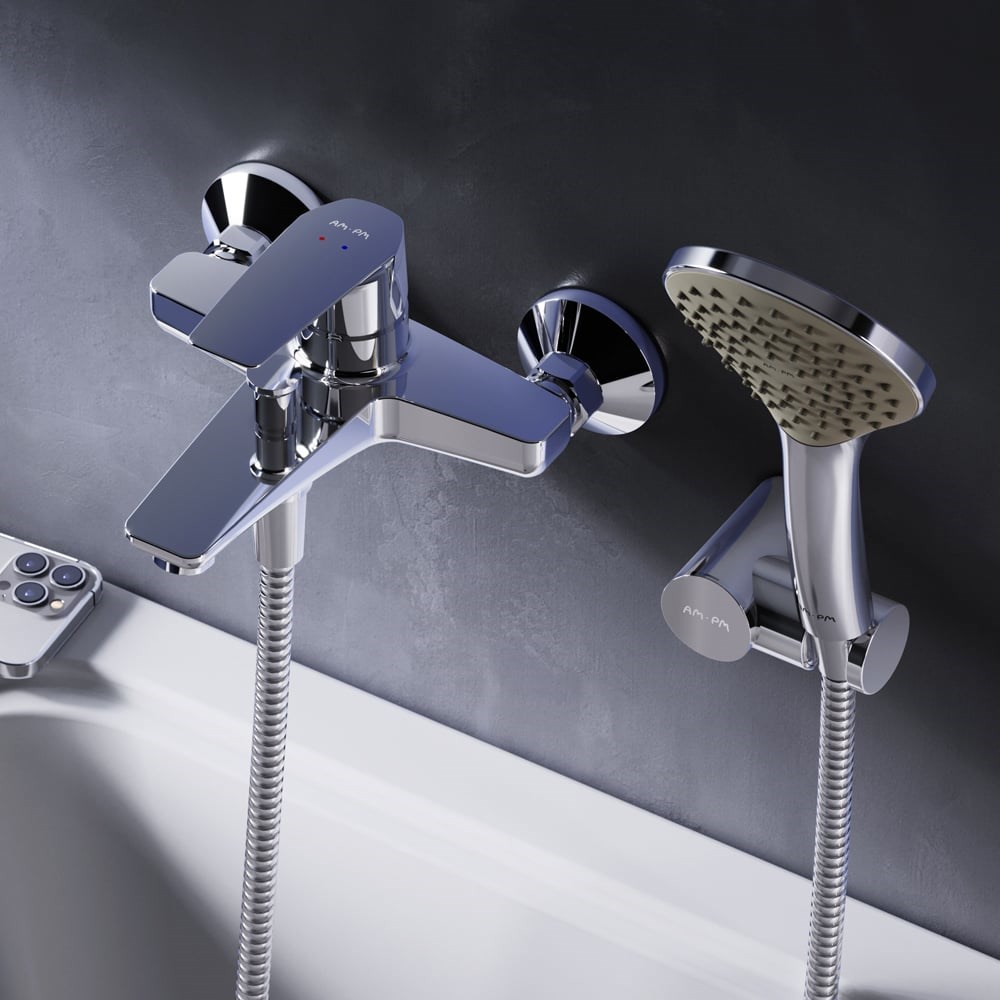 Дизайн от создателей Product Identity AM.PM - GP designpartners (Австрия). Обновление смесителей для ванной комнаты в коллекции Top-Seller’е.Брутальный и трендовый дизайн: уникальная шестигранная форма выделяется среди однообразных стандартных смесителей в доступном ценовом сегменте. Эксклюзивная разработка: специально спроектированный для АМ.РМ керамический картридж SoftMotion 35 мм обеспечивает оптимальную регулировку температуры, а также позволяет выдерживать любые перепады давления.Точная инженерия для Вашего комфорта: благодаря обширной зоне движения ручки управлять температурой воды еще проще. В комплекте душевой набор: стильный ручной душ 110 мм 1 режим, настенный держатель с регулировкой угла наклона, душевой шланг с защитой от скручивания.