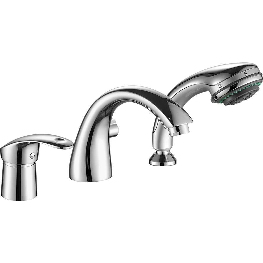 A1121 смеситель ванно-душевой для монтажа на борт ванны на 3 отверстия хром латунь, картридж D=40 мм излив: L=190 мм, H=96 мм, стационарный установочно-монтажный комплект + ручная лейка: ABS пластик, D=80 мм, 3 режима, хром шланг лейки: L=1500 мм, оплётка сталь SUS201, хром