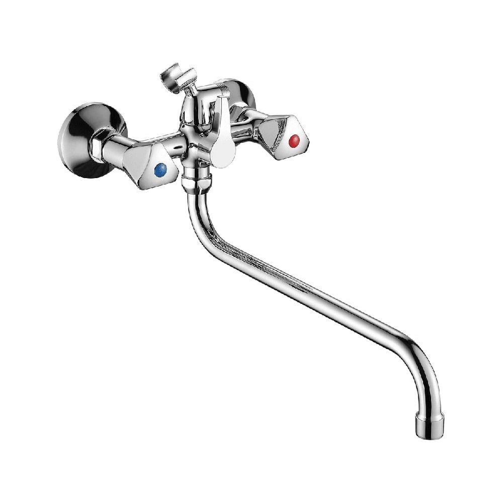 Ванно-душевой смеситель Fashun A2211-2 — двухвентильный настенный смеситель из латуни с хромированным покрытием для ванны и душа. Оснащён кранбуксами с керамическими пластинами 90° для плавного управления водой.Длинный поворотный излив 300 мм удобен и для набора ванны, и для умывальника при совмещённой установке.Душевой гарнитур. В комплект входят эксцентрики, отражатели, ручная лейка из ABS диаметром 80 мм, 1 режим, металлический держатель на корпусе и шланг 1500 мм с оплёткой из стали SUS201, хром.