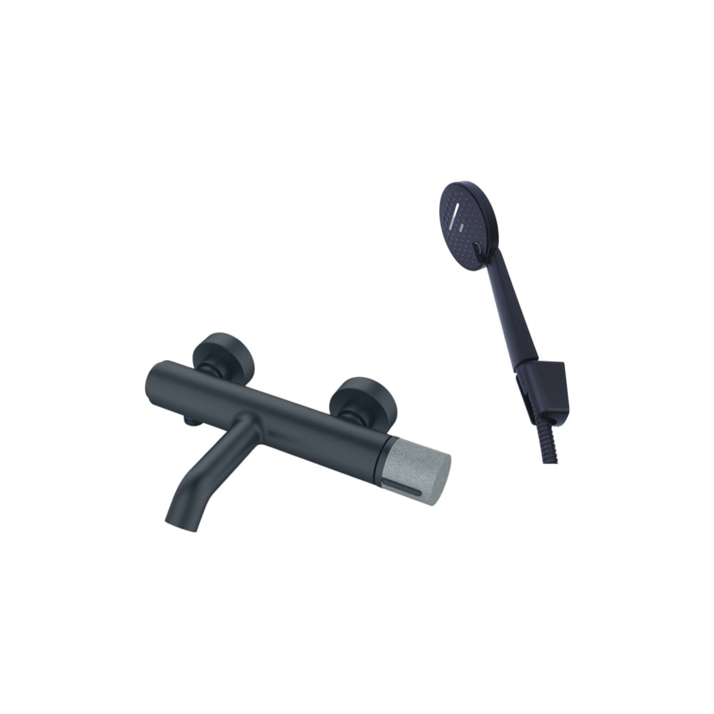 Смеситель для ванны и душа BRONZE DE LUXE FOCUS с душевой лейкой, черный/серый гранит 24603BG