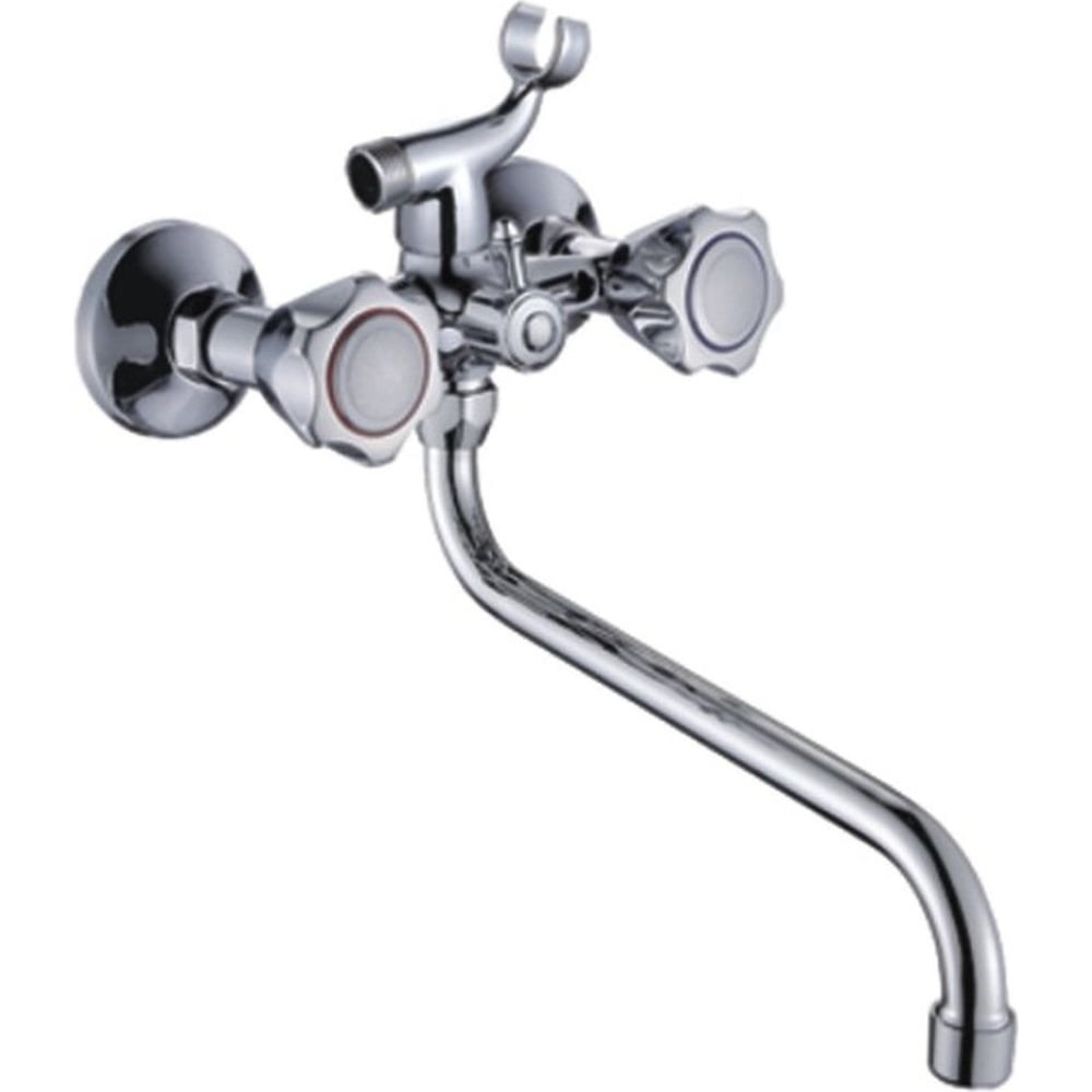 Смеситель для ванны и душа двухвентильный, с S-образным поворотным изливом длиной 38см, шлангом для душа, лейкой и креплением. Покрытие хром Аэратор с функцией лёгкой очистки Кран-буксы латунные, с керамическими пластинами (угол поворота 180 градусов) Встроенный поворотный дивертор