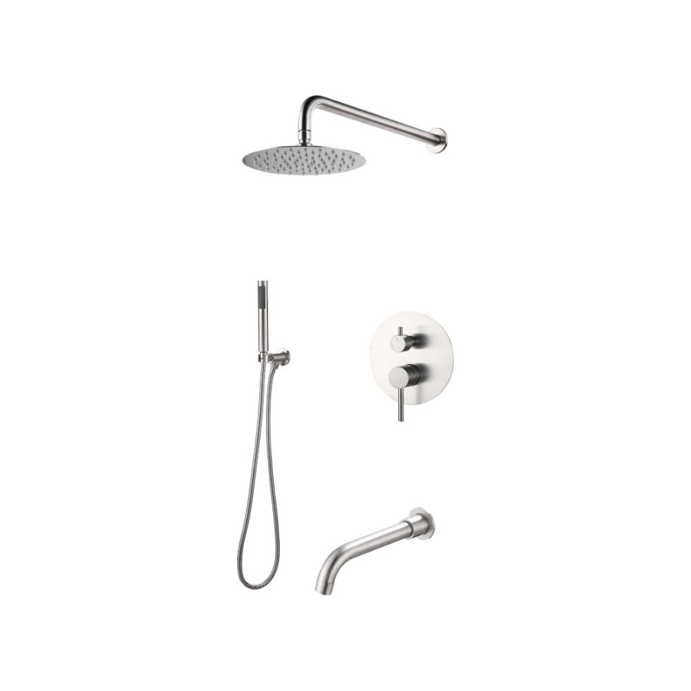 Душевой комплект, с встраиваемым смесителем с изливом, душевой и ручной лейкой, для ванны и душа выполнен из нержавеющей стали и прекрасно впишется в интерьер вашей ванной комнаты, лишние элементы скрыты в стене.Смеситель для ванны дополняет встроенная душевая стойка с тропическим душем. Душевая система идеально подходит для установки в душевой уголок или же в ванную комнату.Использовать смесители и душевое оборудование из нержавеющей стали можно в течение длительного времени. При простом уходе смеситель для ванны с душем не потеряет первоначальный вид.Смеситель для ванны и душа из нержавеющей стали, выполненный в соответствии с современными дизайнерскими тенденциями, органично впишется в интерьер ванной комнаты.Со смесителем 2.0 РМС вы снизите расход воды до 50%. Модель из новой линейки смесителей 2.0 РМС снабжена водосберегающим регулятором.Регулятор позволяет снизить давление воды на выходе из лейки и стабилизировать его. Если давление воды в водопроводе слишком сильное, то струя в душе получается слишком жесткой и некомфортной, а в процессе мытья расходуется лишняя вода. Регулятор устанавливает минимально комфортное давление в шланге и в лейке. Струя становится мягче, приятнее для тела, при этом визуально она не отличается от обычной ни по объему, ни по диаметру. При этом за счет снижения давления расход воды сокращается.