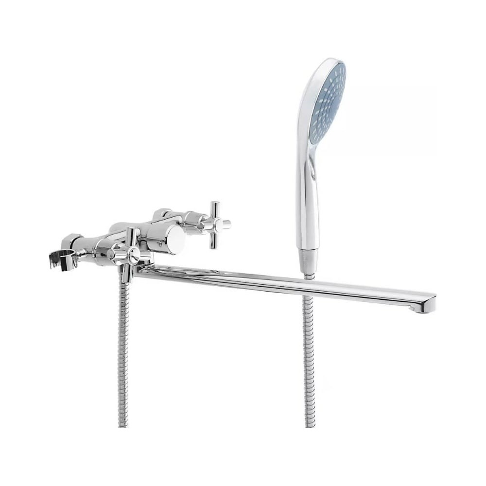Смеситель для ванны с душем, прямой излив 35 см СоюзКран SK08-P208 подойдет для любителей классического типа регулировки воды. Привычное управление при помощи кран-буксы 1/2 позволяет быстро настроить нужную температуру и напор воды. Базовая душевая лейка работает в одном режиме стандартного напора и имеет пластиковые форсунки, которые легко промываются от отложений. Пользователя порадует современный дизайн и бесшумная работа.