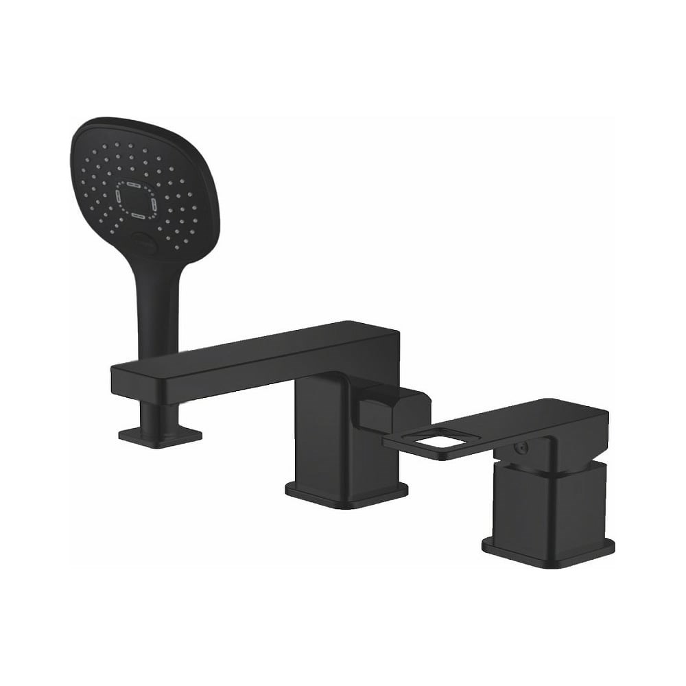 Смеситель для ванны врезной на 3 отверстия. В комплектацию входит: шланг для душа 150 см, лейка двухрежимная, держатель лейки, комплект эксцентриков, комплект отражателей, подводка для смесителя 45 см. Тип управления – рычажный. Форма смесителя – квадратная; излив стационарный. Способ монтажа – на три отверстия, на шпильке, гибкая подводка. Переключатель на душ расположен в корпусе излива. Материал изделия – высококачественная латунь, которая обрабатывается по современной технологии литья под низким давлением. Встроенный керамический картридж обеспечивает долгий срок службы, точную настройку температуры и напора воды. Смеситель оборудован встроенными аэратором, обеспечивающим равномерный поток струи, дополнительную экономию воды, а также способствует понижению уровня шума воды.