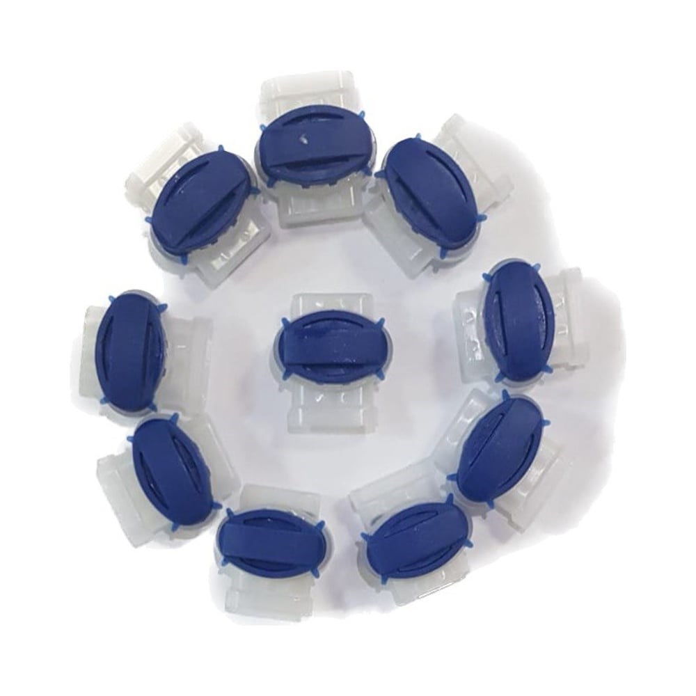 Коннектор-соединитель гелезаполненный с врезным контактом - комплект 10 шт. Предназначен для соединения токопроводящих жил сечением от 0,5 до 1,5 мм². Соединение осуществляется за счет прокалывающего зажима, который прорезает изоляцию провода и устанавливается надежный электрический контакт. Внутри коннектора содержится гидрофобный гель, который при прокалывании заполняет внутреннюю полость и защищает соединение от воздействия окружающей среды. Данный вид соединителей применяется в слаботочных сетях, например в системах автоматического полива, для надежного электрического соединения электромагнитных клапанов с блоком управления. Для организации компьютерных и телефонных сетей и т. п. Используя скотчлоки, можно организовать ответвление, наращивание и другие виды соединений. Кроме того, скотчлок-соединители часто используют для низковольтных цепей, например, для автомобильной проводки, врезки в основную проводку сигнализации или подключения маломощных колонок, в системах охранной сигнализации и домофонов и т.д. Опрессовку соединителей можно осуществить с помощью плоскогубцев, без применения специального инструмента.
