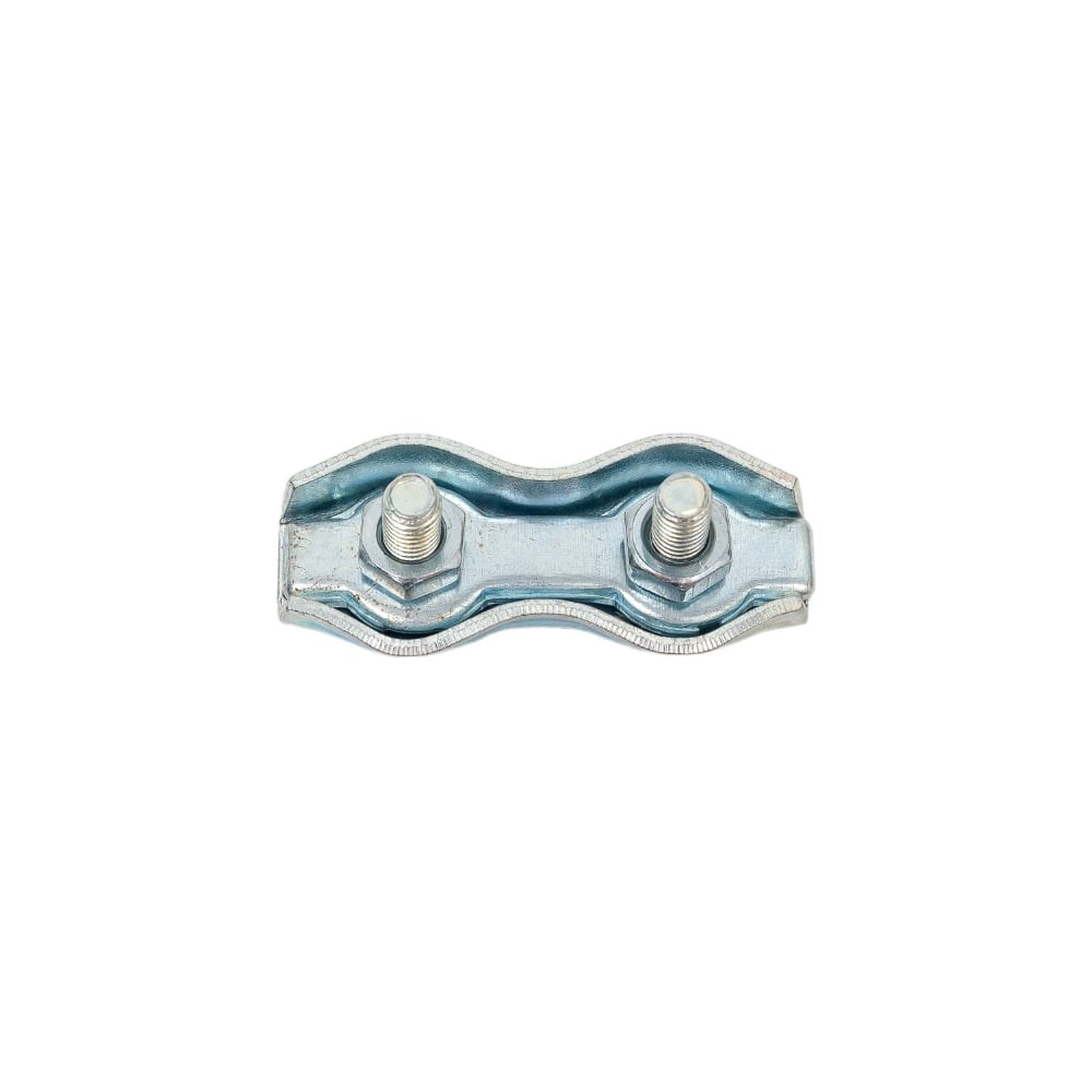 Соединитель двойной (duplex) используется для сращивания тросов и канатов малых диаметров между собой, а также для формирования петель на концах троса. Отличается от одинарного зажима большим запасом прочности и образует максимально надежное крепление. Свободный конец троса устанавливается в зажим, причем конец троса должен выступать из зажимного устройства на расстояние не меньше чем 1/2 диаметра троса. Образованное соединение закрепляется прижимной пластиной и болтовым соединением. Для защиты от истирания, конструкция соединителя предусматривает закладку петли троса в коуш.