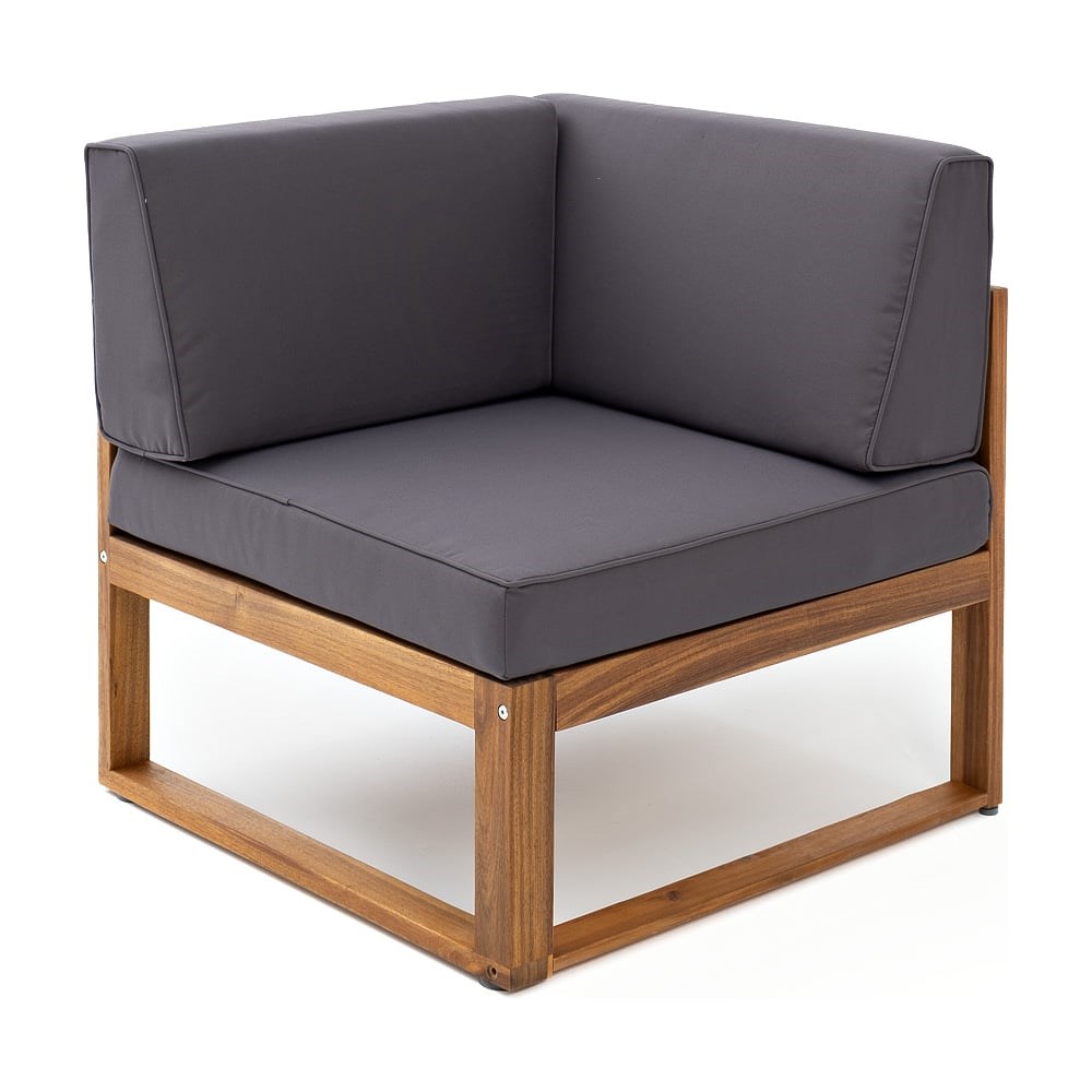 Угловая софа Booka выполнена в натуральном стиле, она проста и функциональная. Основание сделано из массива акации, такая древесина устойчива к влаге и повреждениям. Подушки, входящие в комплект, создадут необходимый комфорт. Можно без лишних забот производить чистку съёмных чехлов, а ткань олефин сама по себе не впитывает влагу, устойчива к появлению пятен. Такая софа легко впишется в дачный интерьер.Софа может быть частью большого углового или п-образного диванаИзделие поставляется в разобранном виде.