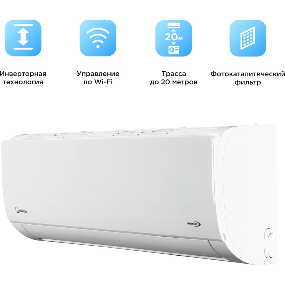 Сплит-система инверторная Midea Favorite MSFRW-18N8D0 настенная предназначена для обеспечения оптимального микроклимата в комнатах площадью до 50 м². Антибактериальный фильтр задерживает пыль, аллергены, очищая воздух в помещении. Кондиционер автоматически возвращается к предыдущим настройкам при возобновлении работы после аварийного отключения электроэнергии. Комфортное управление - поддержка технологии Wi-Fi дает возможность управлять кондиционером через мобильный гаджет. Также изменять настройки можно голосом с помощью помощников: Алиса, Маруся и Салют. Ночной режим - при запуске этой функции кондиционер в первые 2 часа автоматически увеличивает (при охлаждении) или снижает (при обогреве) температуру на градус и поддерживает ее на протяжении 5 часов и выключается. Режим обеспечивает комфортный микроклимат для сна и энергосбережение. Энергоэффективный инвертор - cплит-система инверторная Midea Favorite MSFRW-18N8D0 оснащена компрессором, который дает возможность регулировать скорость вращения вала, что позволяет снизить энергопотребление до 30%.