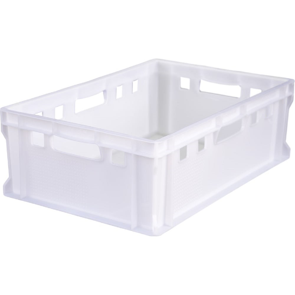 Ящик Тара.ру п/э мясной 600x400x200 сплошной Е2 натуральный морозостойкий 20316 соответствует стандарту пластиковой тары для мясоперерабатывающей промышленности в соответствии с DIN 55423-1. Однако область применения не ограничена одной отраслью. Ящики разных высот стыкуются между собой и штабелируются в стопки.