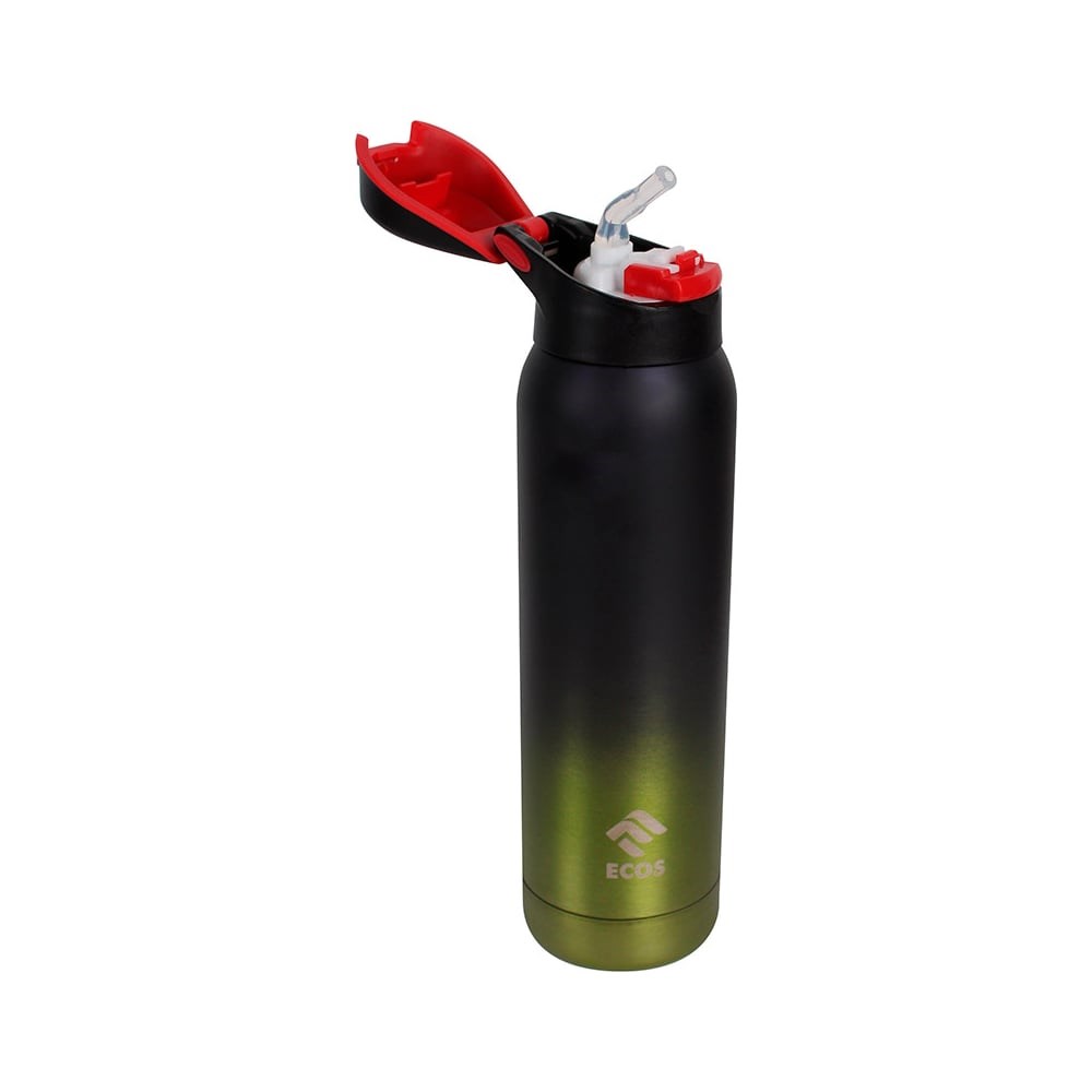 Компактная удобная спортивная термос-бутылка для воды и напитков объемом 0.5 л. Подойдет для людей с активным образом жизни. Изготовлена из высококачественной нержавеющей стали, герметична, поддерживает температуру горячих напитков в течение 12 часов. Термобутылка предназначена для спортивных секций, путешествий, семейных мероприятий и школы. Открывается одной рукой путем нажатия на механизм. Вакуумная трубочка позволяет пить в движении. Бутылка оснащена плетеным карабином для удобного подвеса на школьный или походный рюкзак.